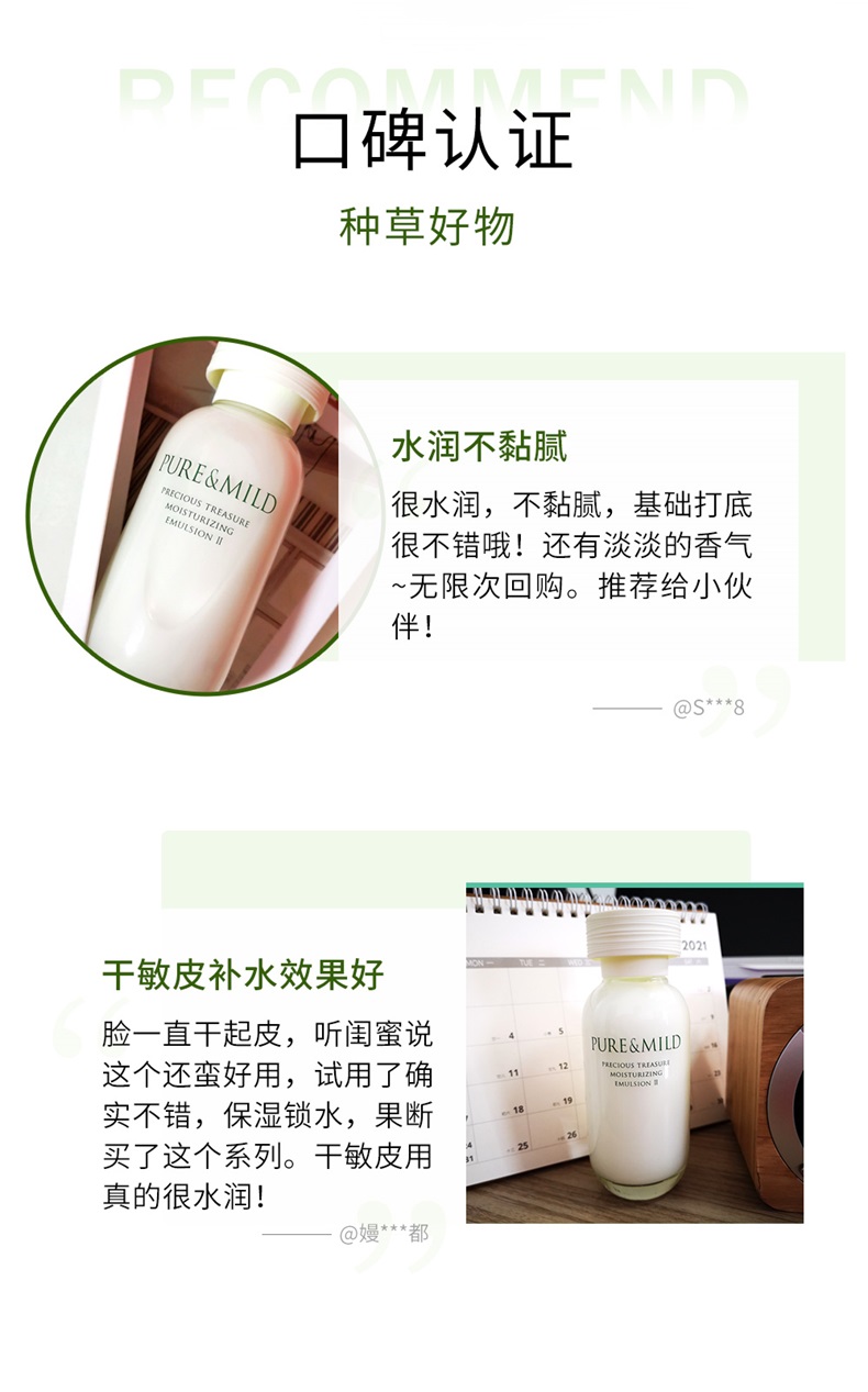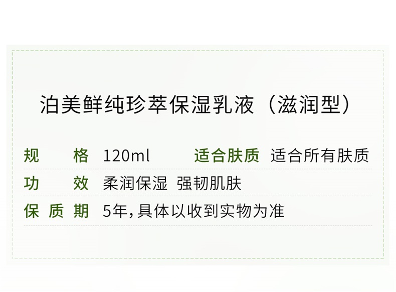 商品名称:PURE&MILD/泊美鲜纯珍萃滋润型保湿乳液120ml(本土版)