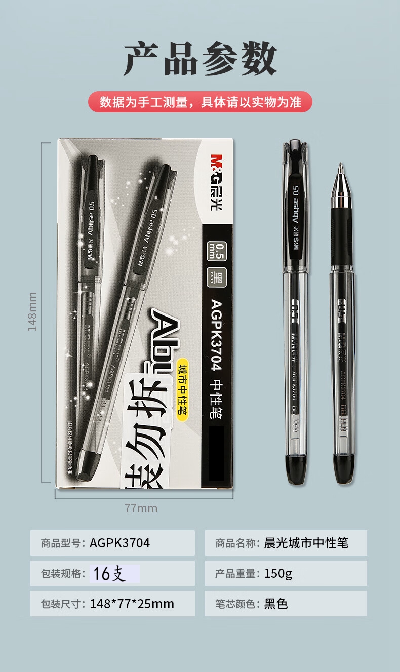 商品名称:晨光城市三角笔杆中性笔-黑色0.5毫米*16支AGPK3704