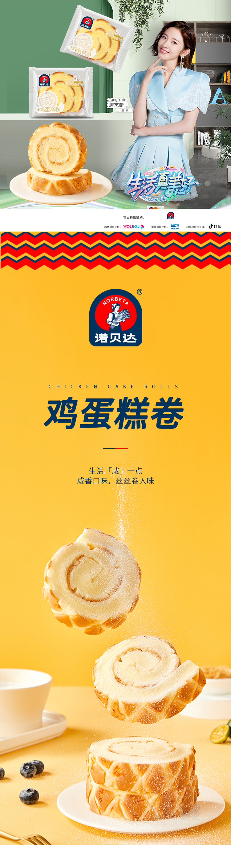 商品名称:诺贝达鸡蛋糕卷整箱510g