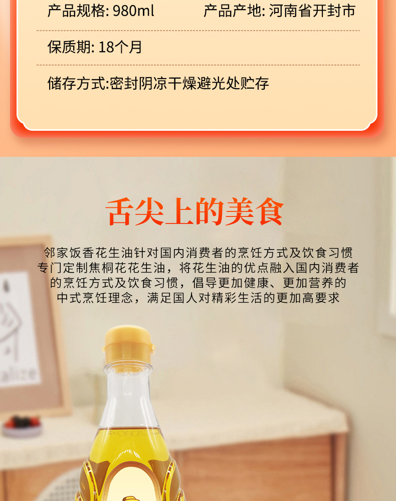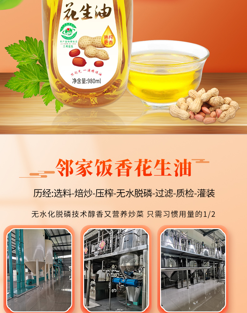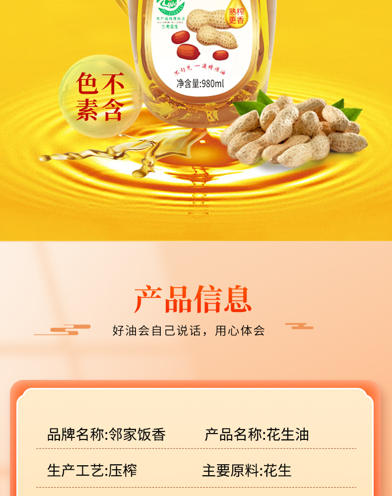 商品名称:邻家饭香压榨一级花生油980ml