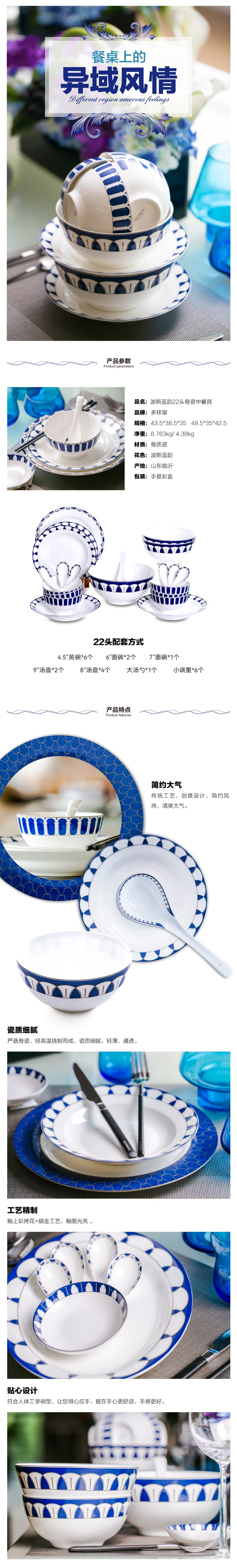 商品名称:TAYOHYA/多样屋波斯蓝韵骨瓷中餐具22件套