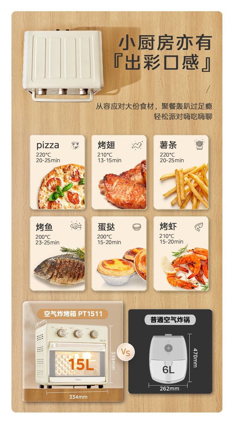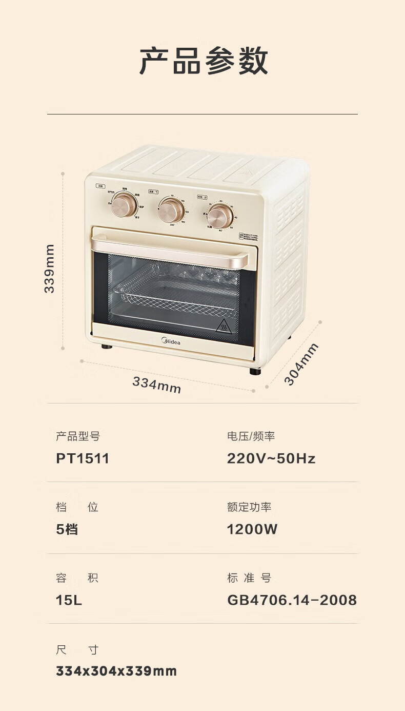 商品名称:Midea/美的15升空气炸烤箱PT1511