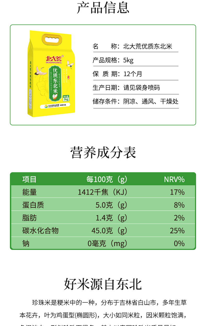 商品名称:北大荒优质东北米5kg