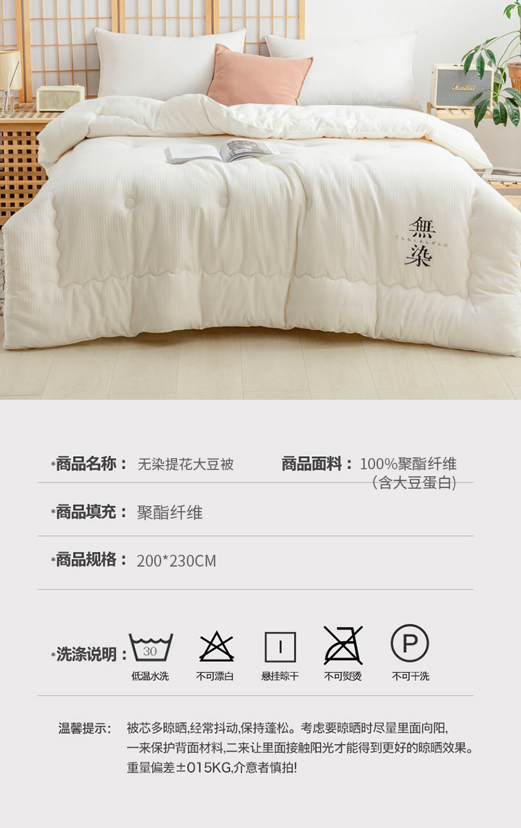 商品名称:FIRS/杉杉无染提花大豆被200*230cm 2300g
