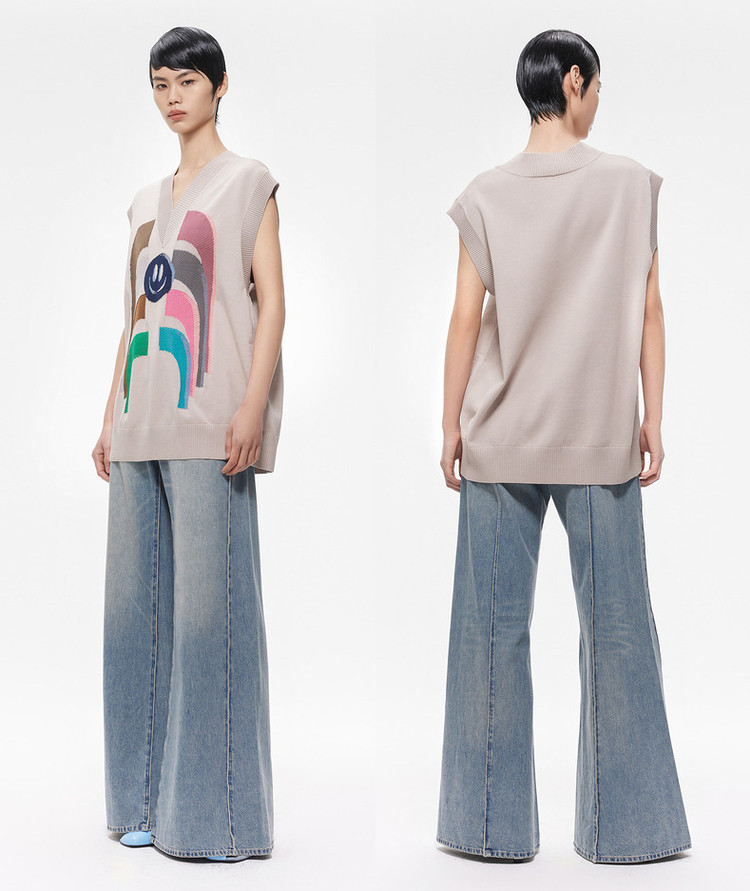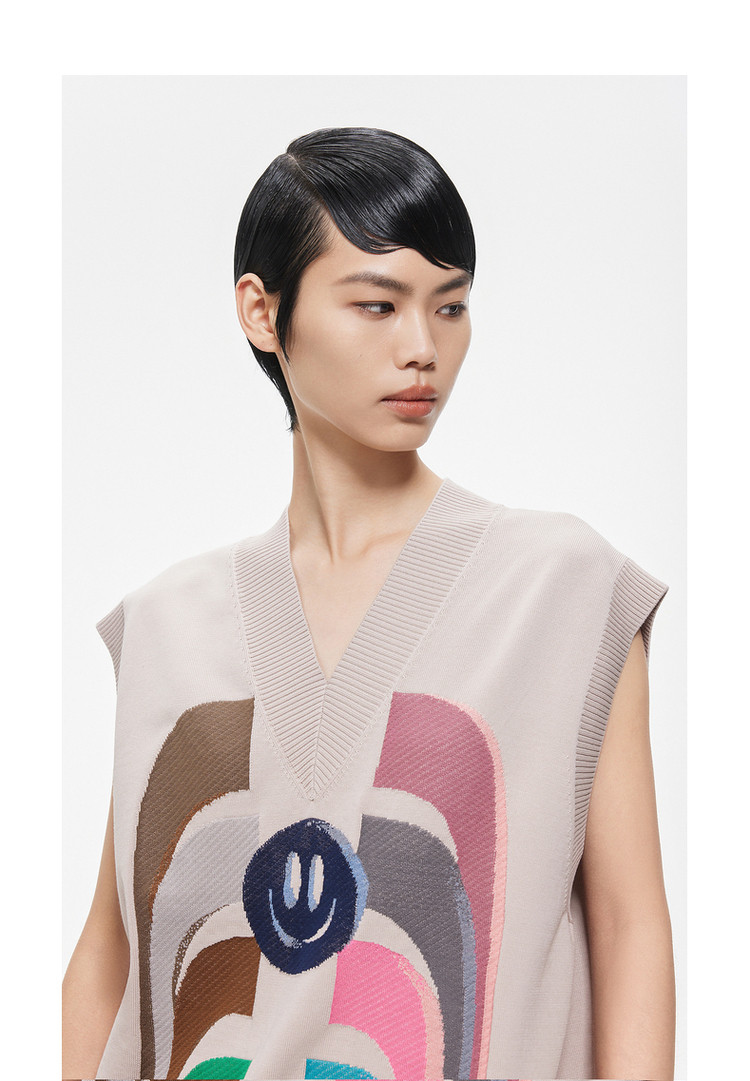 商品名称:春针织背心宽松V领毛针织衫女 324363