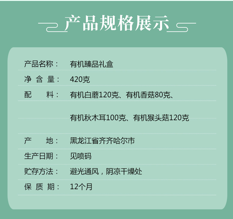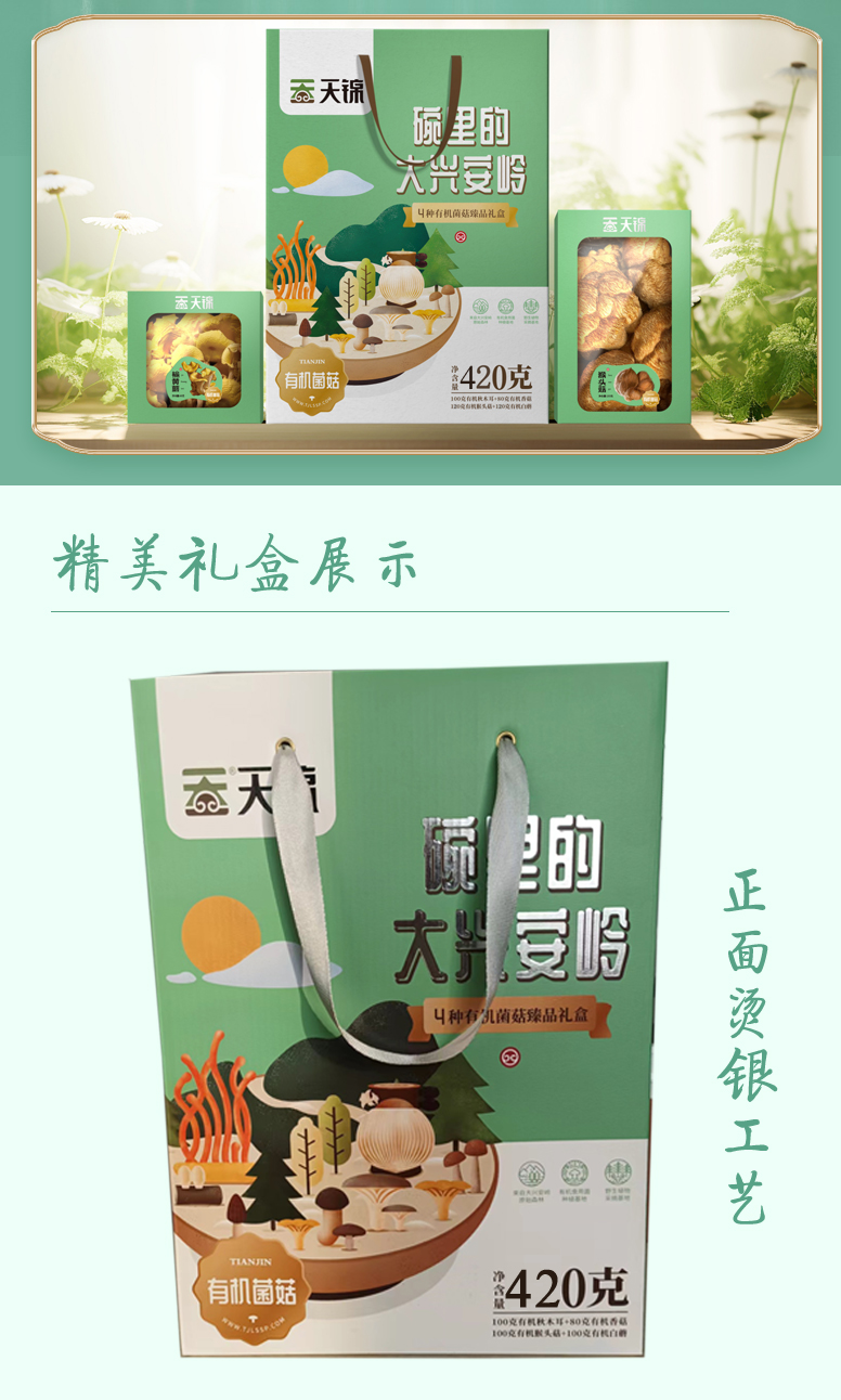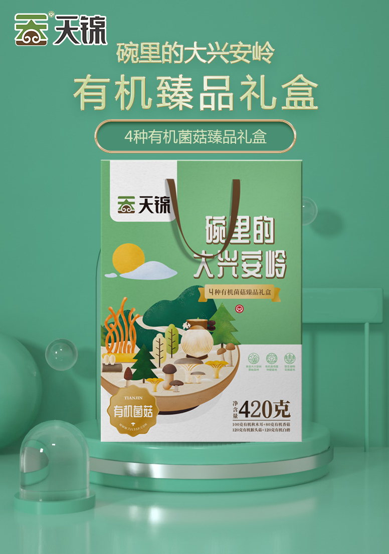 商品名称:天锦碗里的大兴安岭有机菌菇臻品礼盒420g