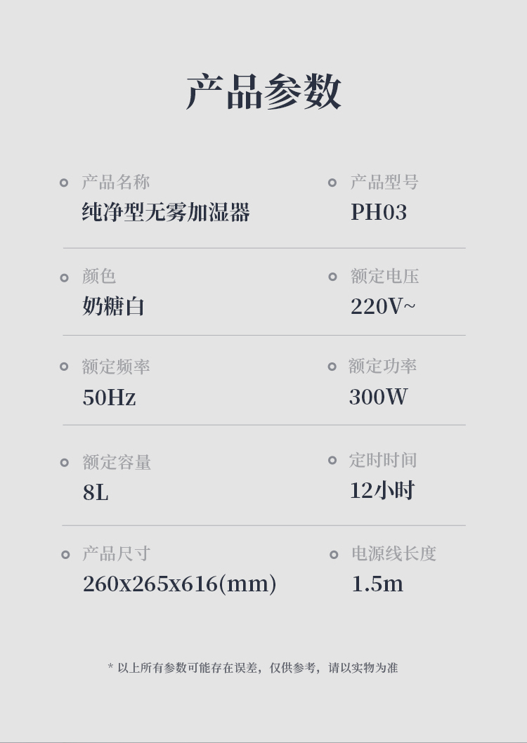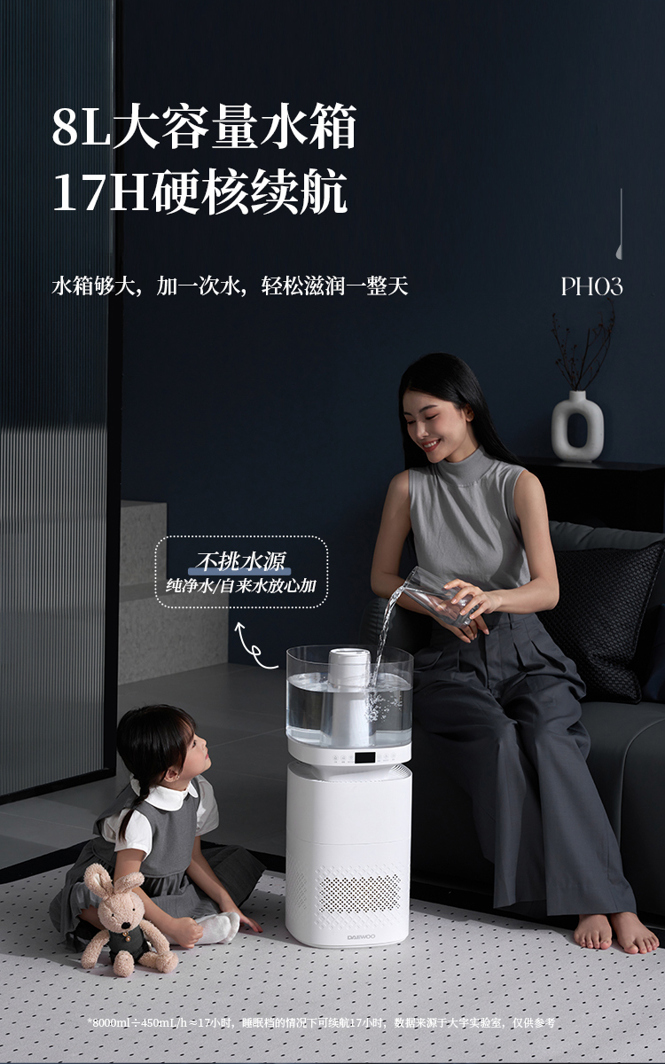 商品名称:DAEWOO/韩国大宇8升纯净型无雾加湿器-奶糖白PH03