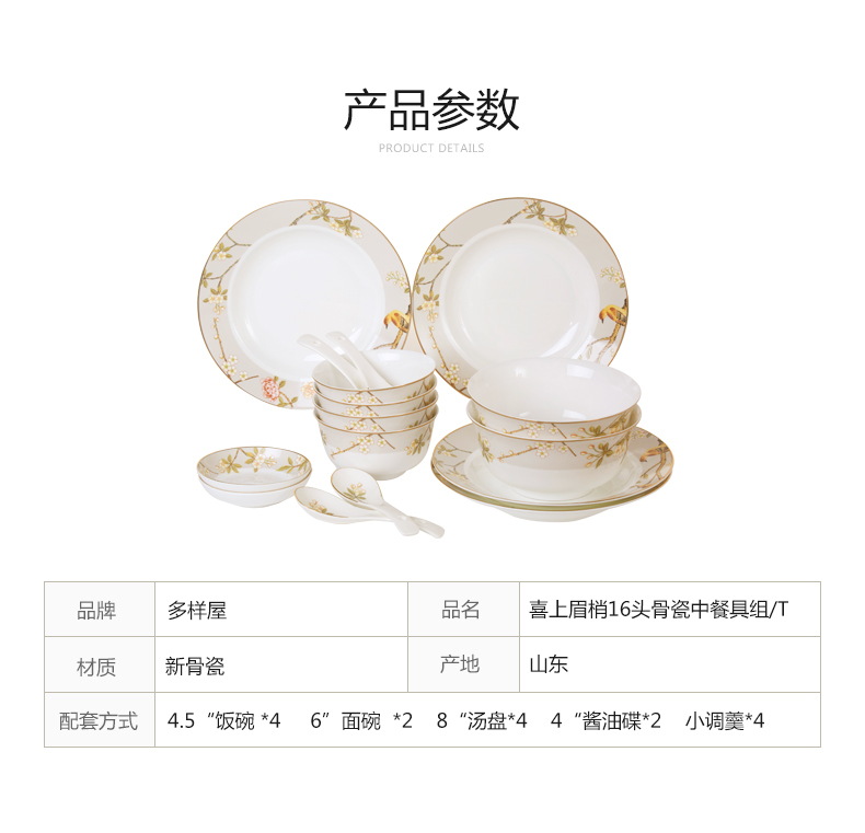 商品名称:TAYOHYA/多样屋喜上眉梢骨瓷中餐具/T 16件套