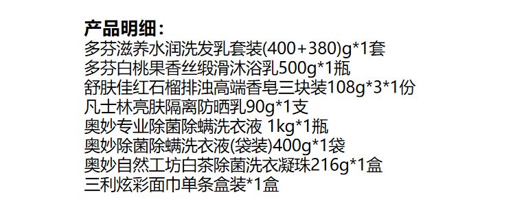 商品名称:多芬舒肤佳凡士林奥妙三利清洁洗护套装
