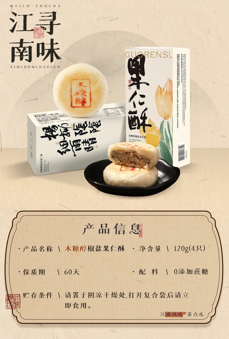 商品名称:知味观木糖醇椒盐果仁酥120g*4盒