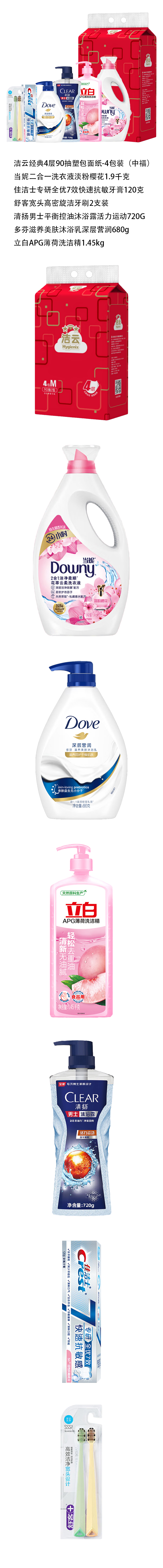 商品名称:洁云当妮佳洁士舒客清扬多芬立白清洁用品套装
