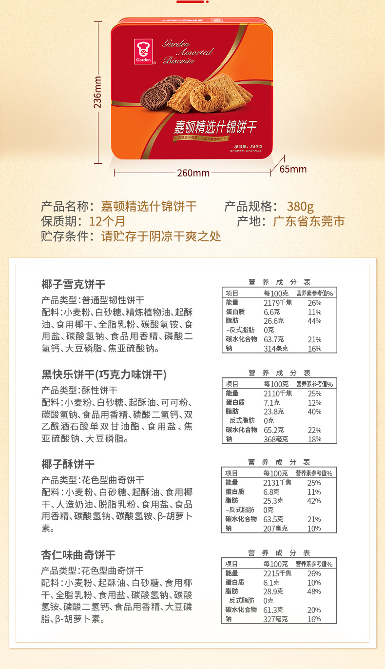 商品名称:Garden/嘉顿精选什锦饼干礼盒380g*2盒