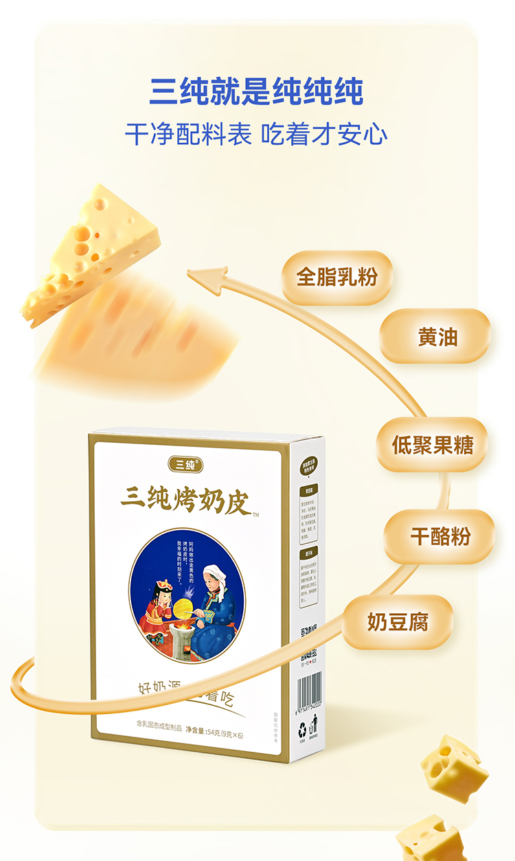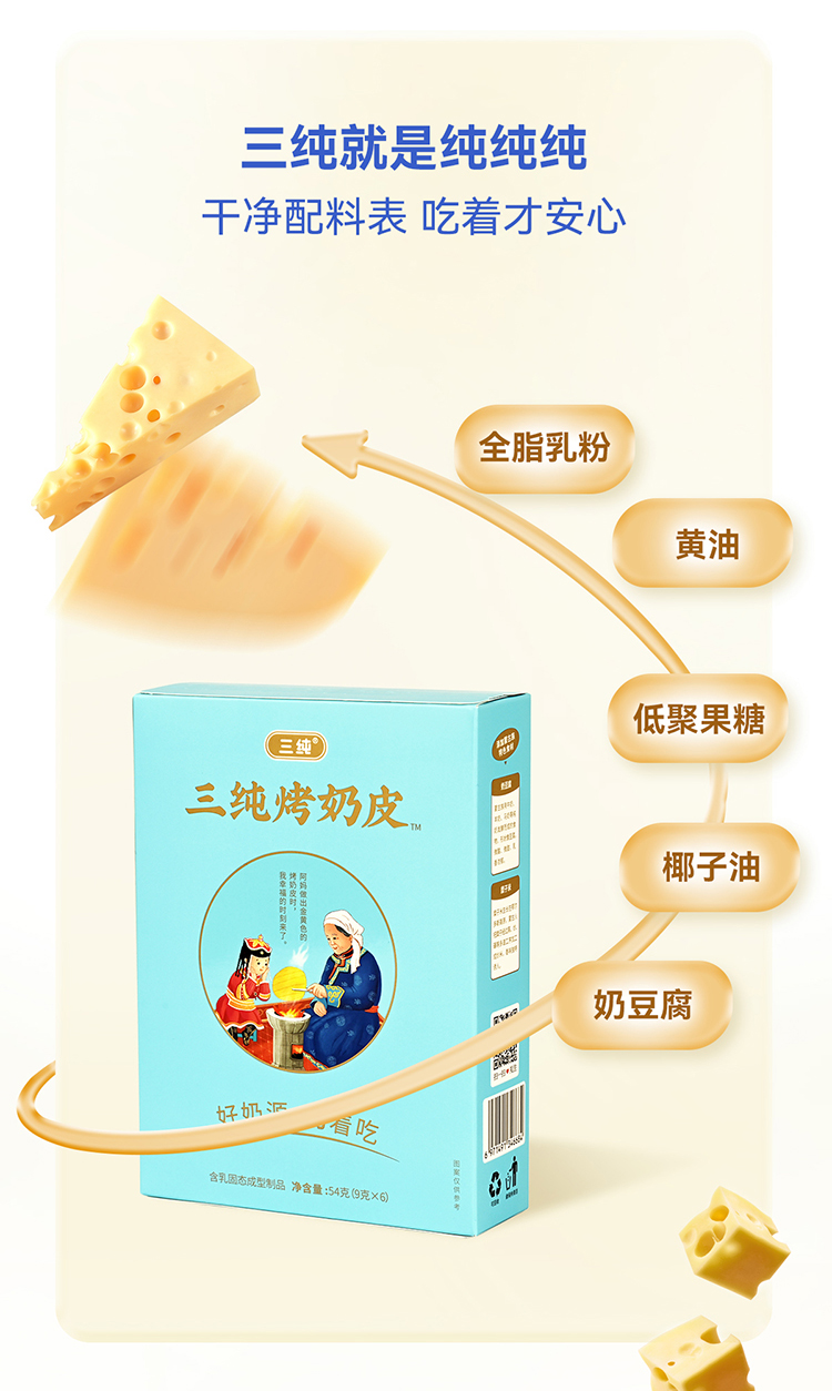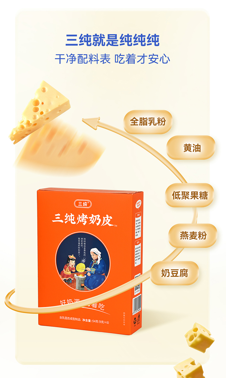 商品名称:三纯烤奶皮54g*5盒