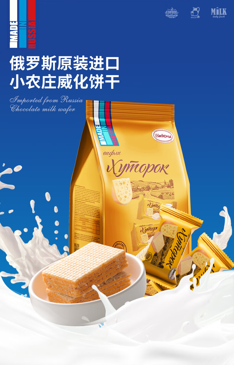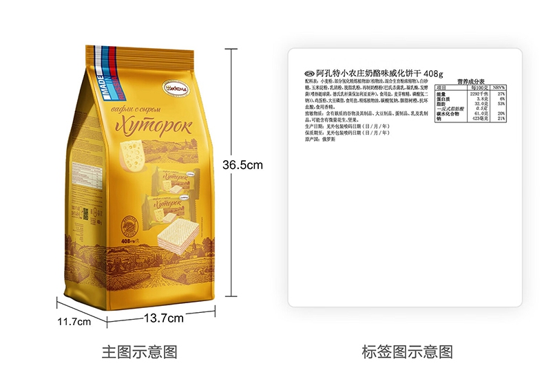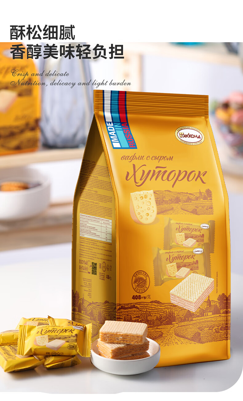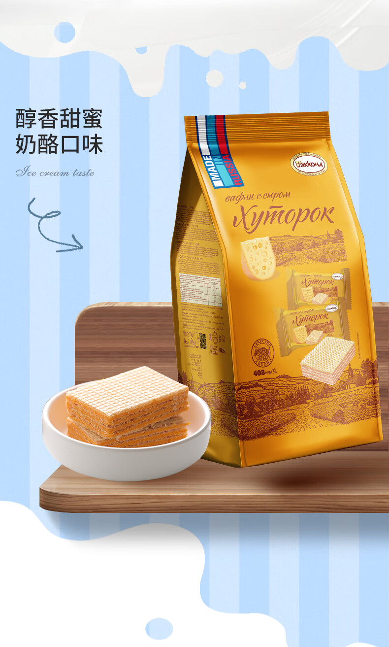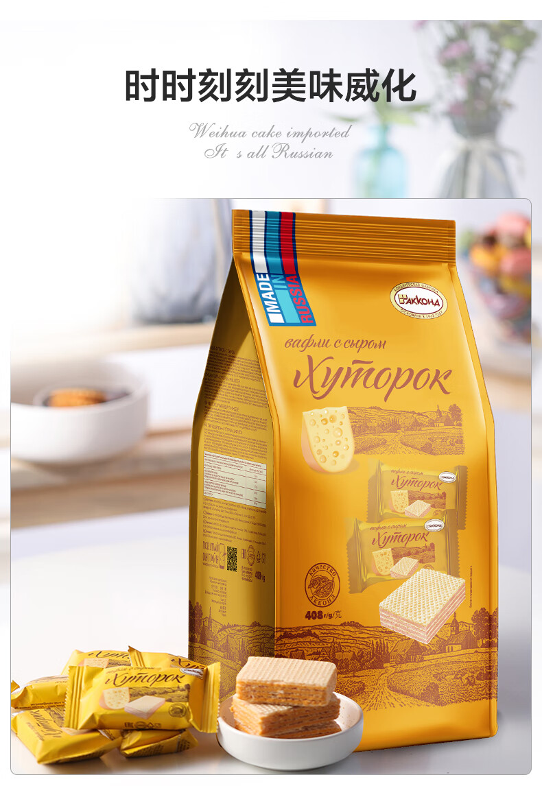 商品名称:阿孔特俄罗斯进口小农庄奶酪味威化饼干408g*2袋