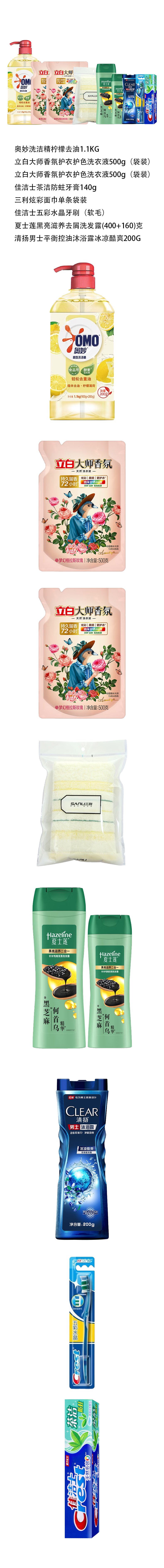 商品名称:奥妙立白佳洁士三利夏士莲清扬洗护清洁套装