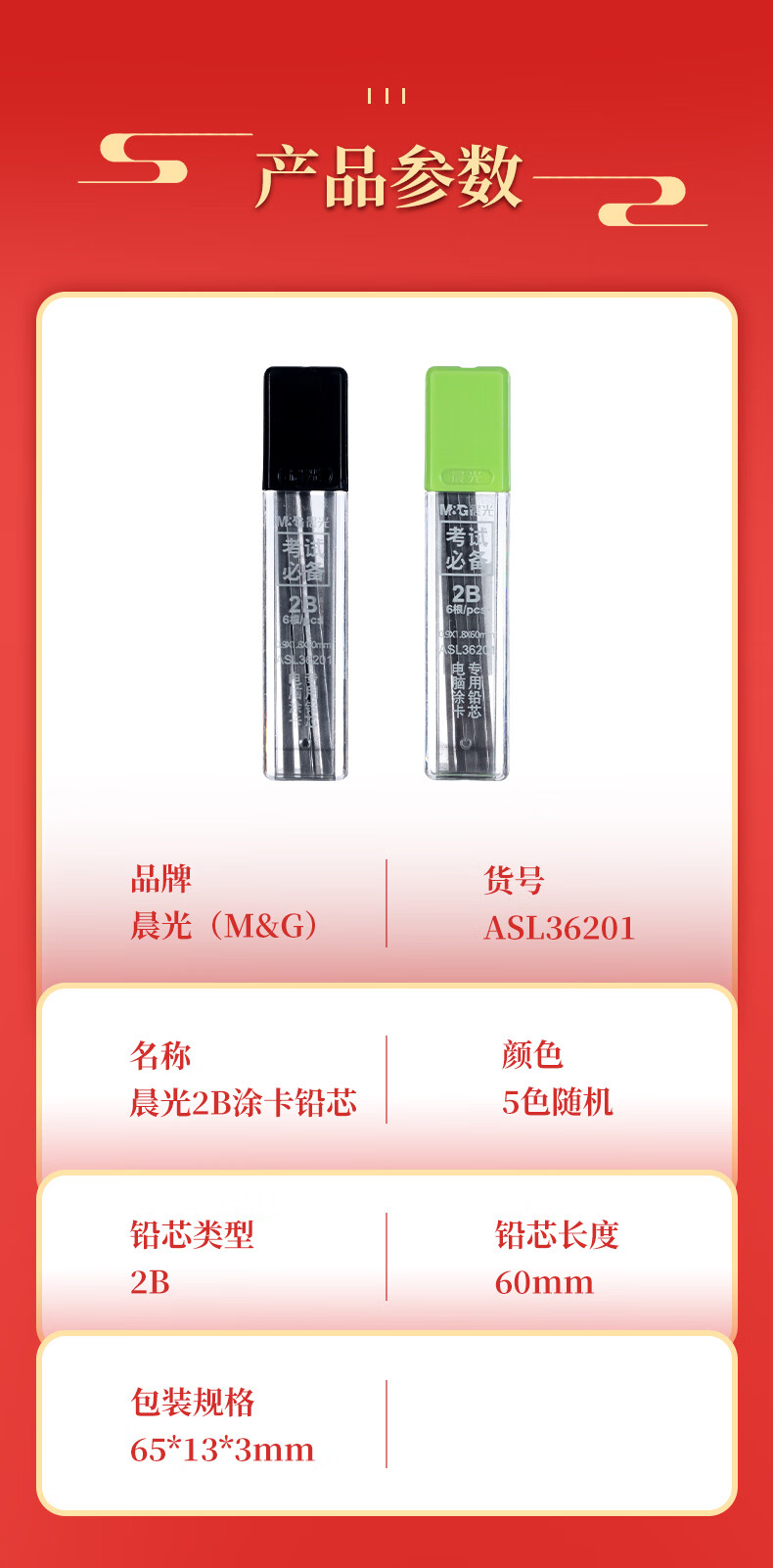 商品名称:晨光2B考试电脑专用涂卡铅芯整盒6根*20盒ASL36201