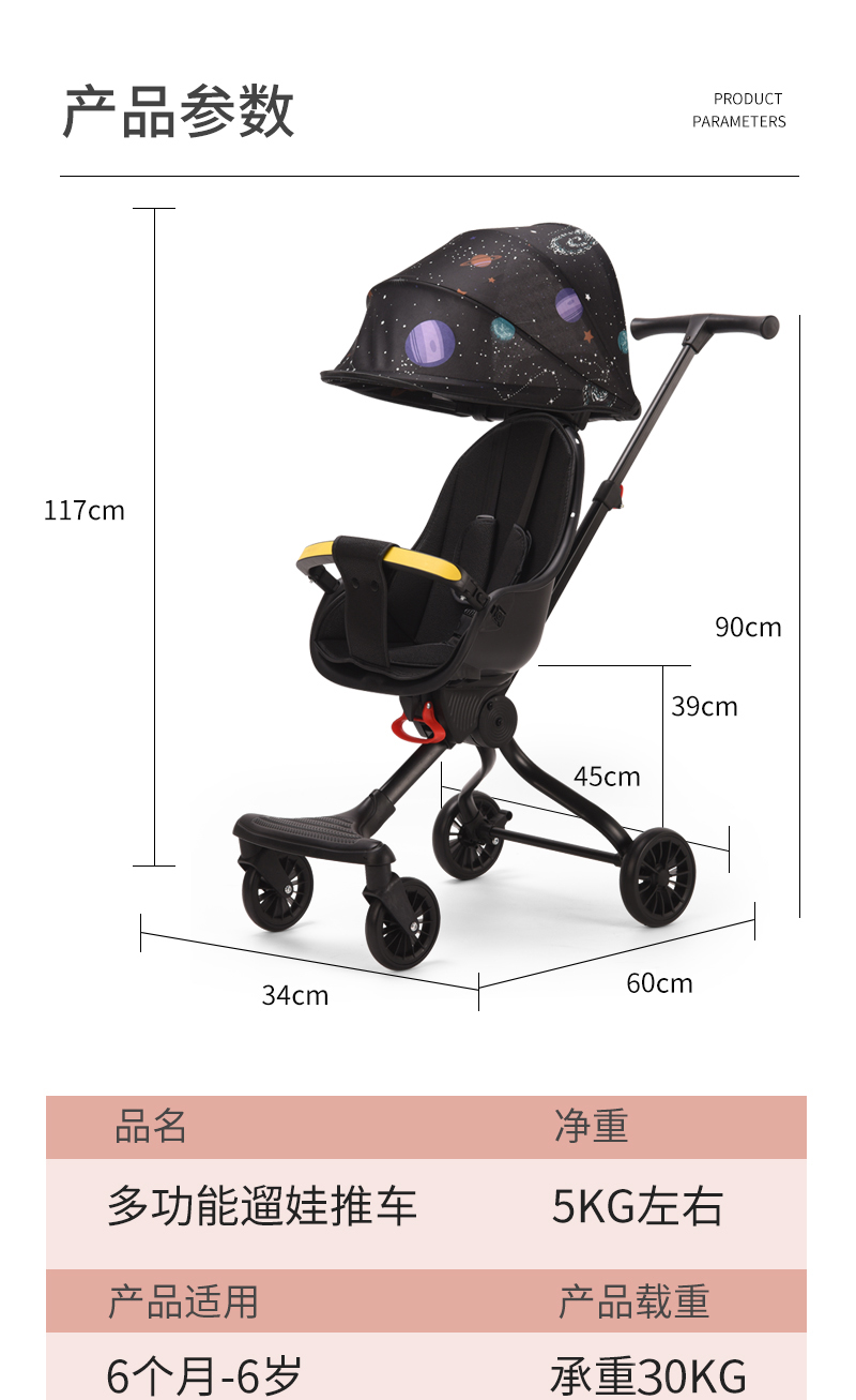 商品名称:airud/艾瑞迪多功能遛娃推车-黑色DK-621