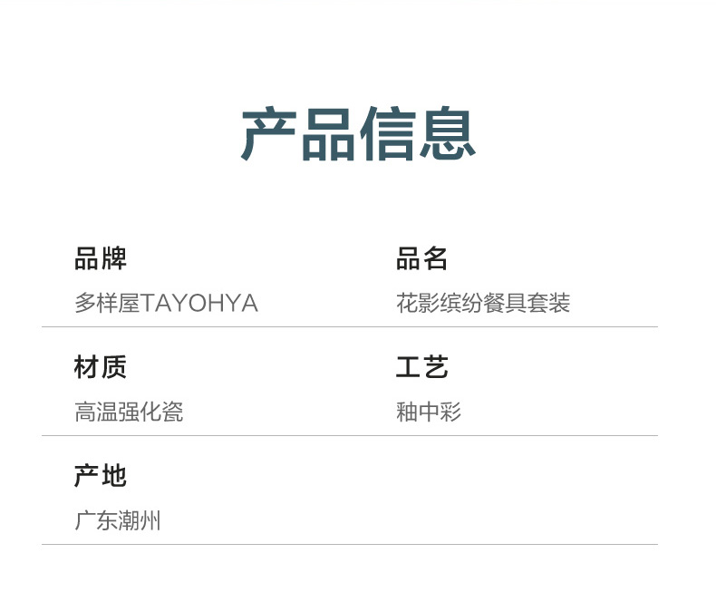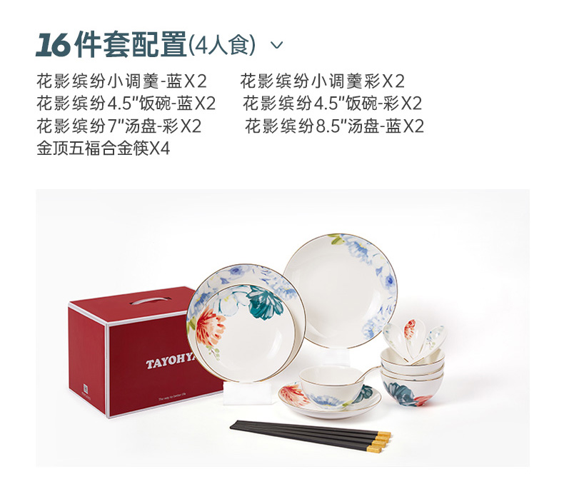 商品名称:TAYOHYA/多样屋花影缤纷餐具16件套