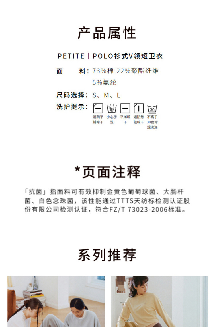 商品名称:NEIWAI内外少女系列POLO衫式V领短卫衣休闲好搭配 870538