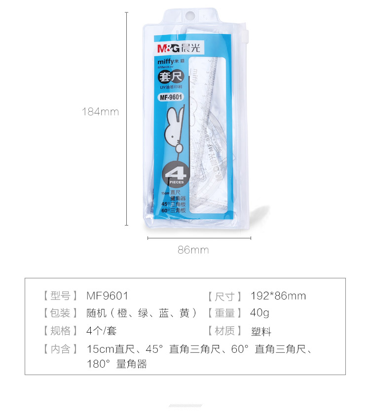 商品名称:晨光米菲学生绘图尺子4件套10套MF9601