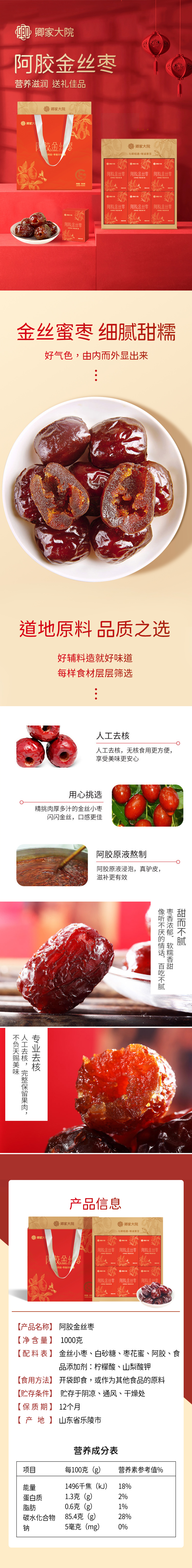 商品名称:卿家大院阿胶金丝枣礼盒1000g