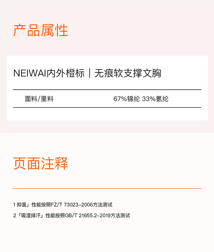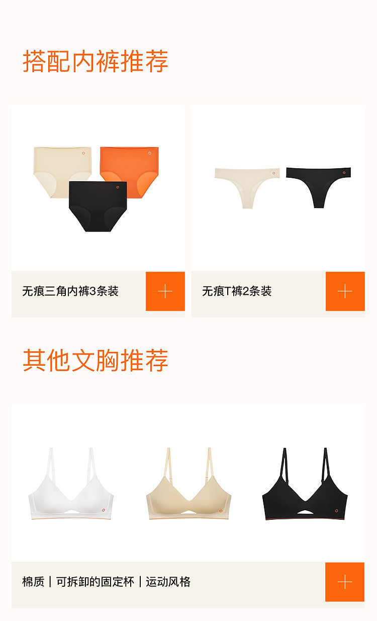 商品名称:NEIWAI内外橙标|无痕软支撑固定杯文胸内衣女舒适 395146