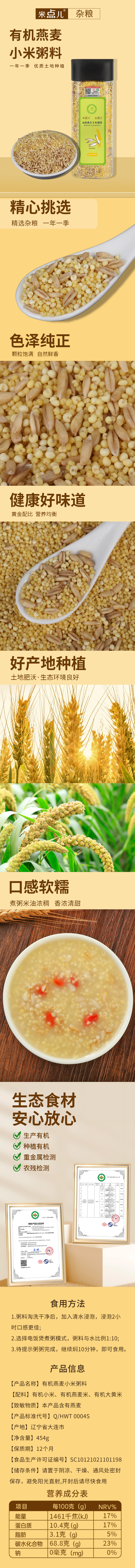 商品名称:天瑞优品米点儿豆点儿有机燕麦小米粥料454g*4罐