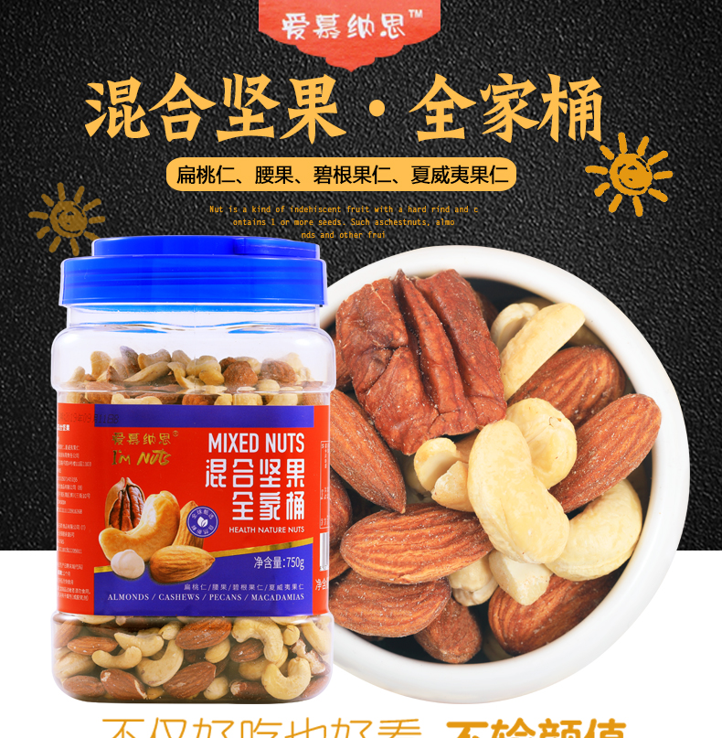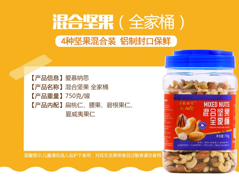 商品名称:爱慕纳思混合坚果全家桶罐装750g