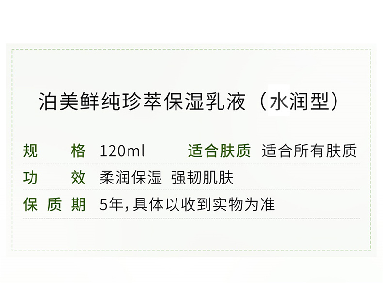 商品名称:PURE&MILD/泊美鲜纯珍萃水润型保湿乳液120ml(本土版)