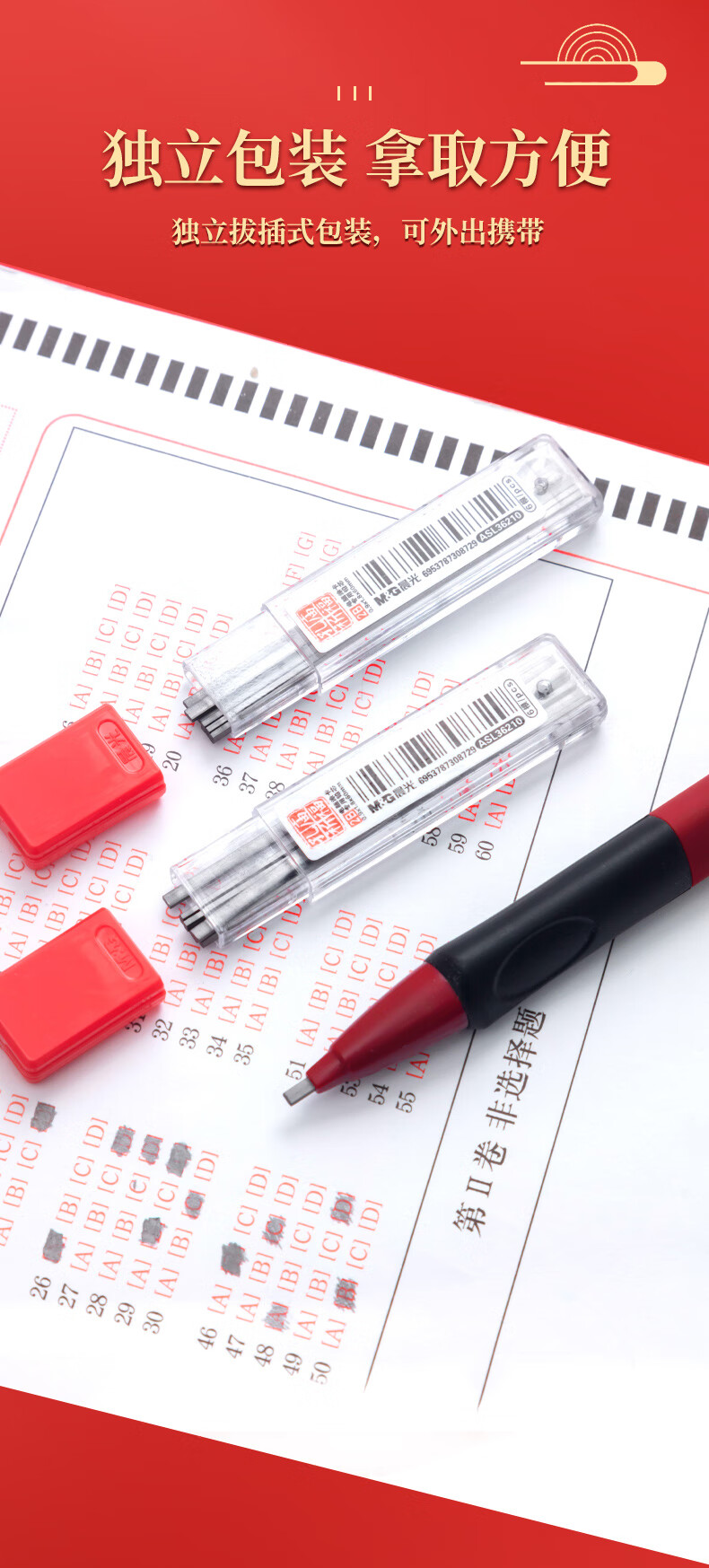 晨光孔庙祈福2B涂卡铅芯整盒6根*20盒ASL36210