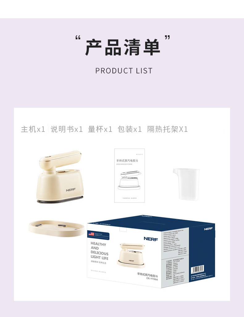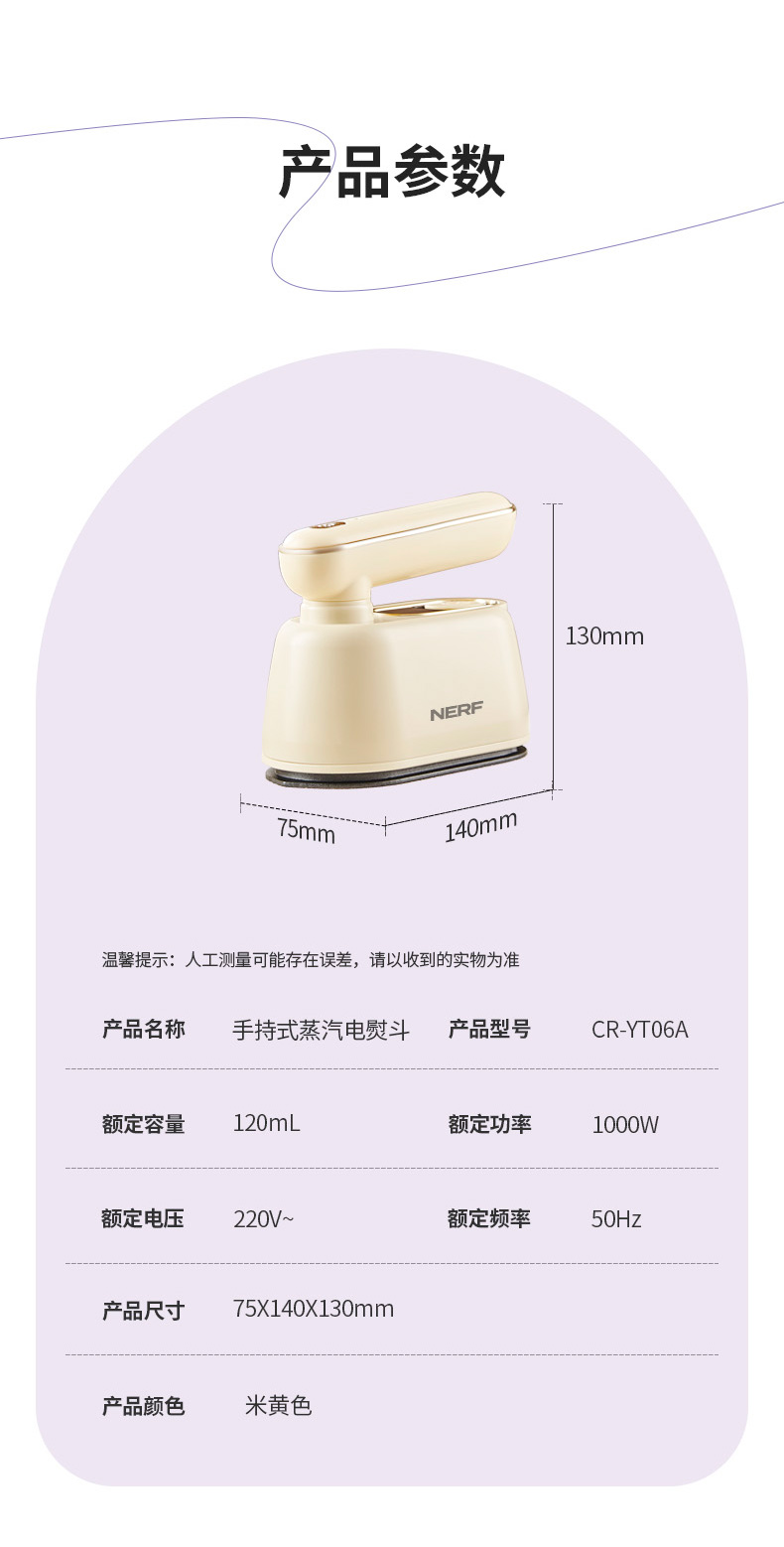 商品名称:NERF/拉尔弗手持蒸汽电熨斗CR-YT06A