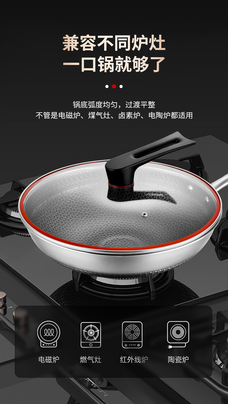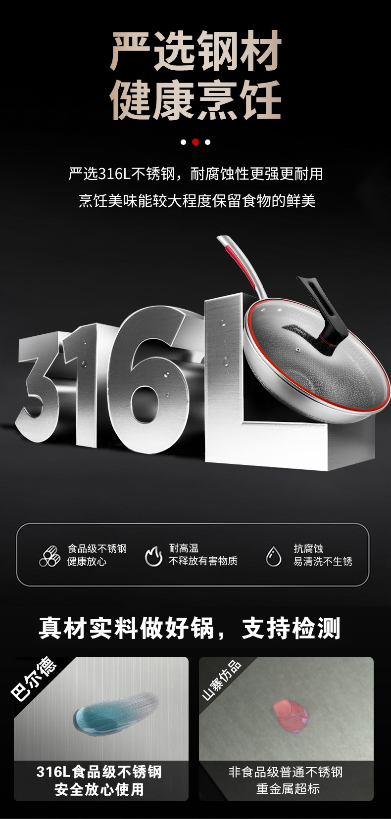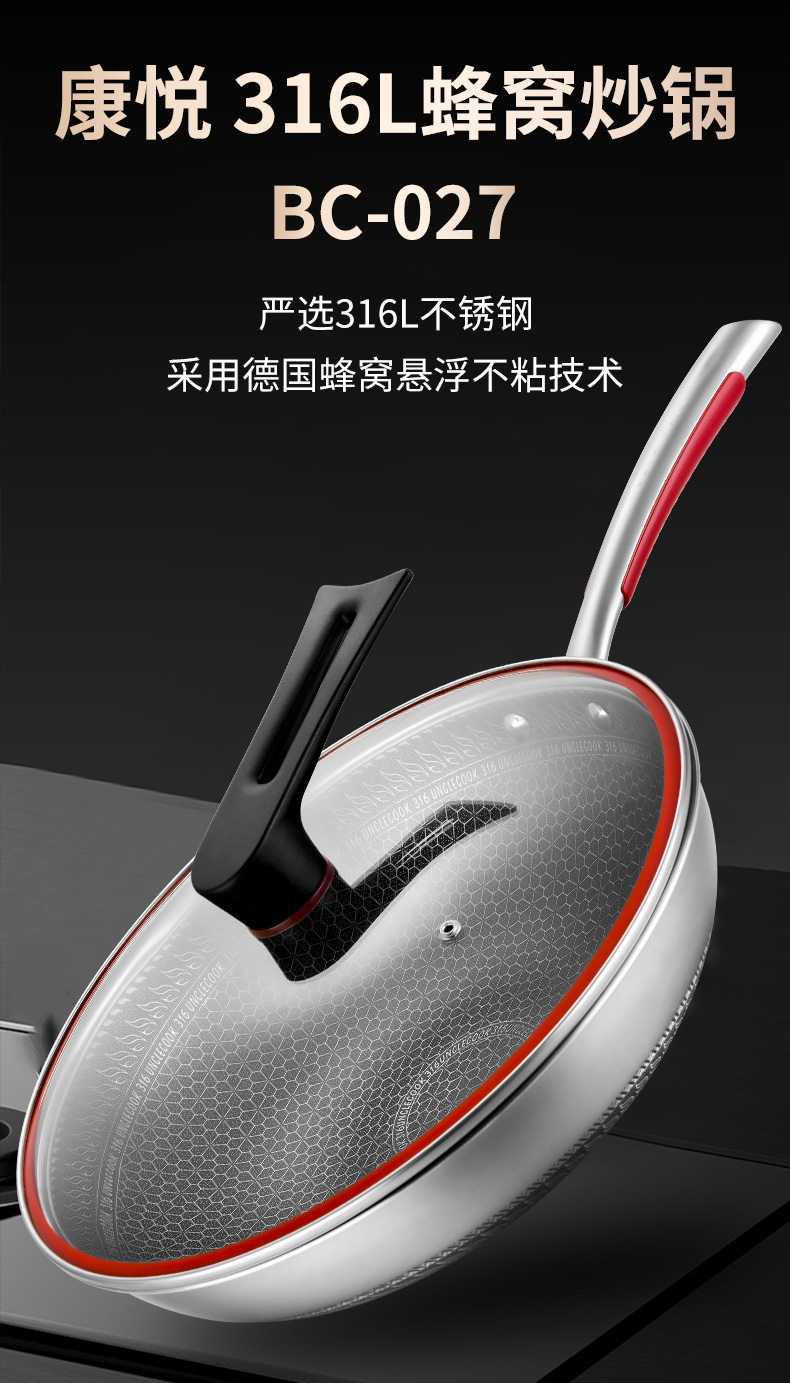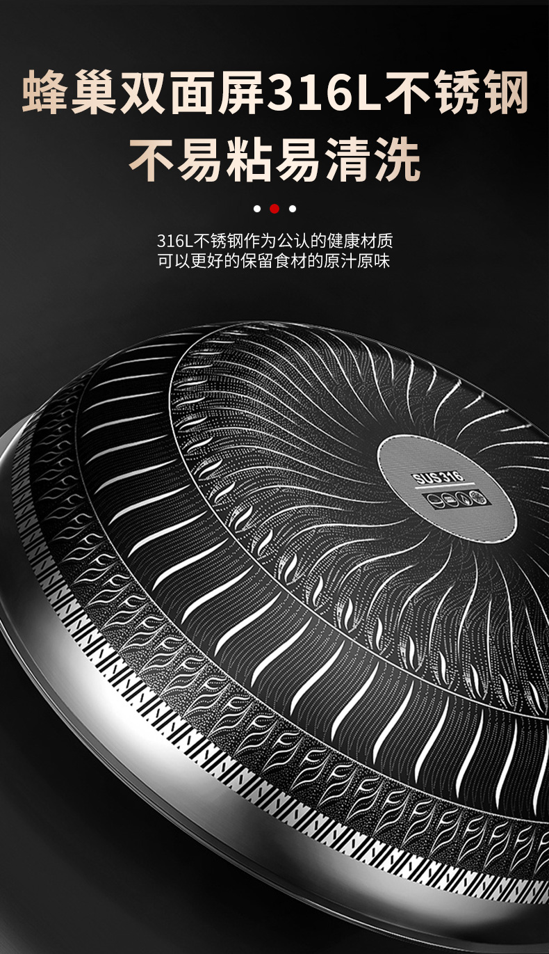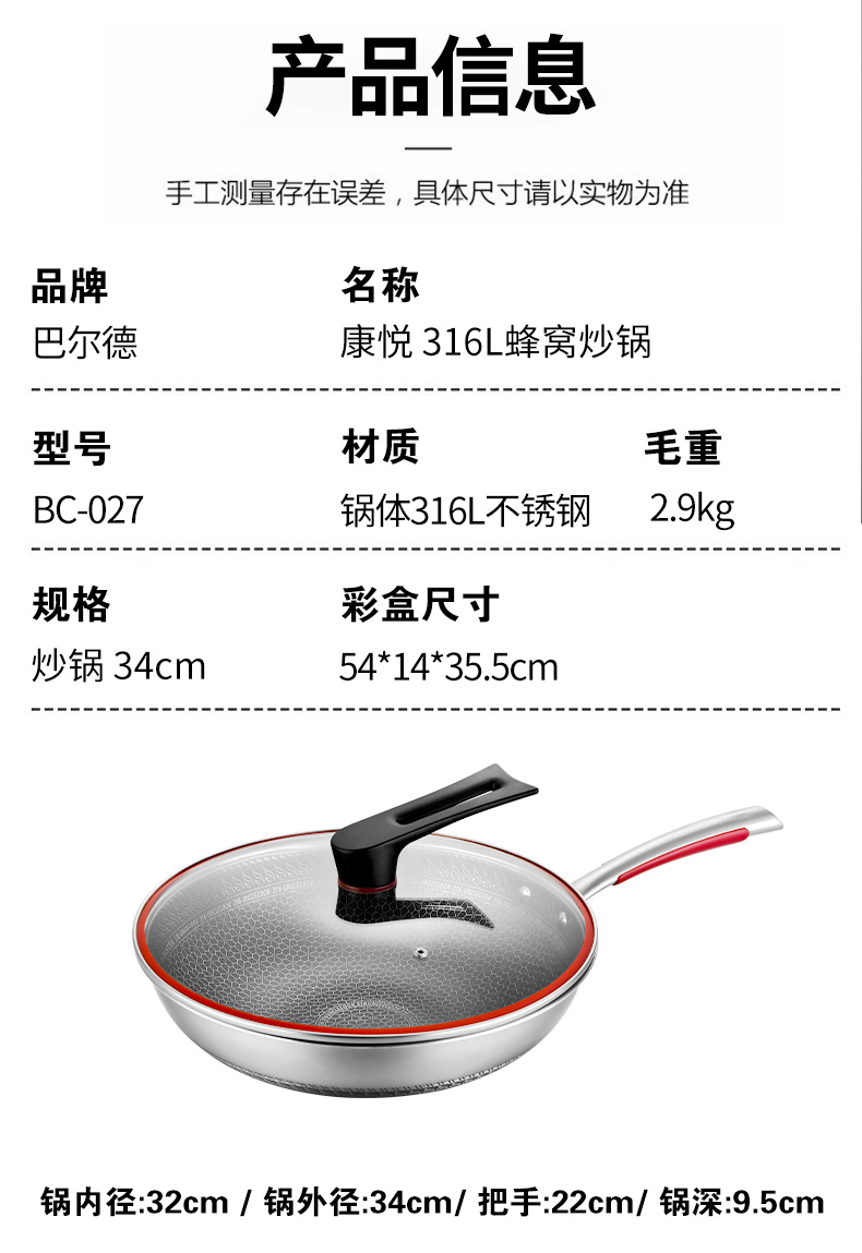 商品名称:(WS)TI-BRO/巴尔德32cm康悦316L蜂窝炒锅BC-027