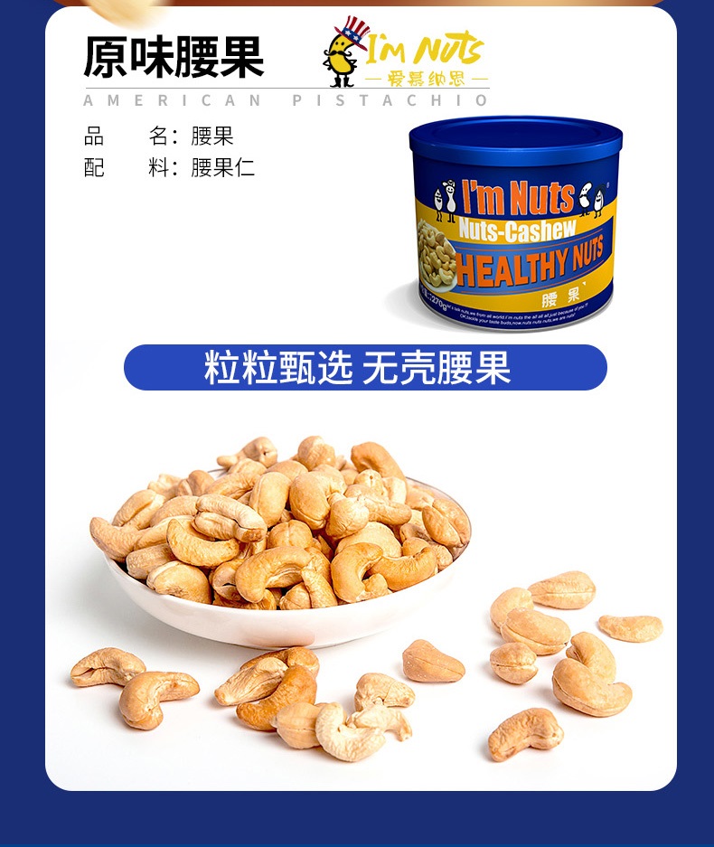 商品名称:爱慕纳思原味腰果铁罐装270g*2罐