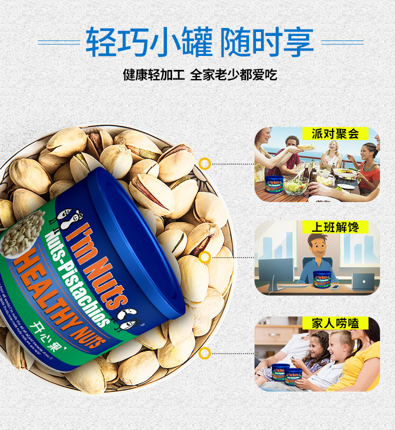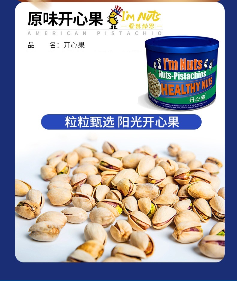 商品名称:爱慕纳思开心果铁罐装255g*2罐