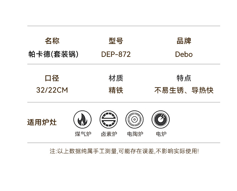 商品名称:Debo/德铂帕卡德锅具套装DEP-872