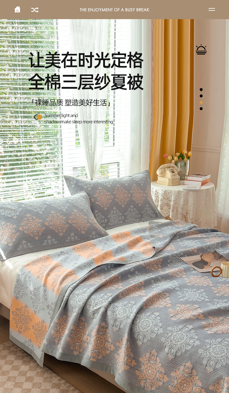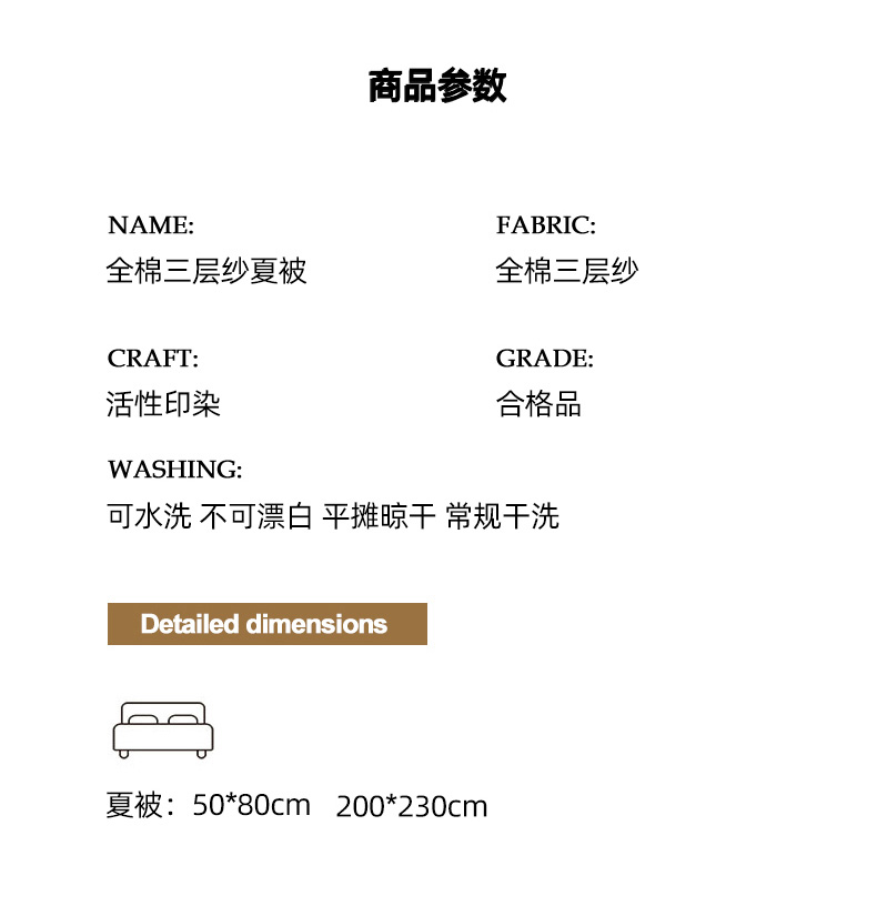 商品名称:(WS)GRACE/洁丽雅米兰风情全棉三层纱夏被三件套200*230cm