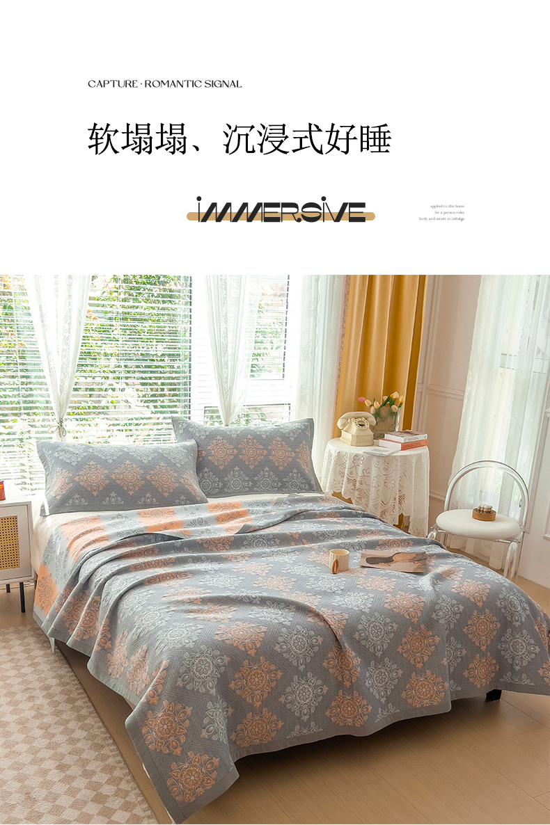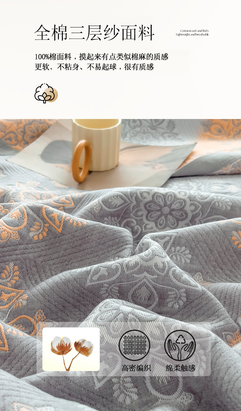 (WS)GRACE/洁丽雅米兰风情全棉三层纱夏被三件套200*230cm