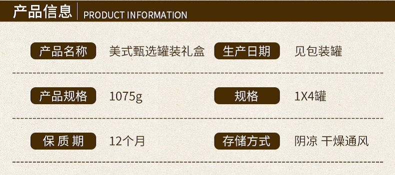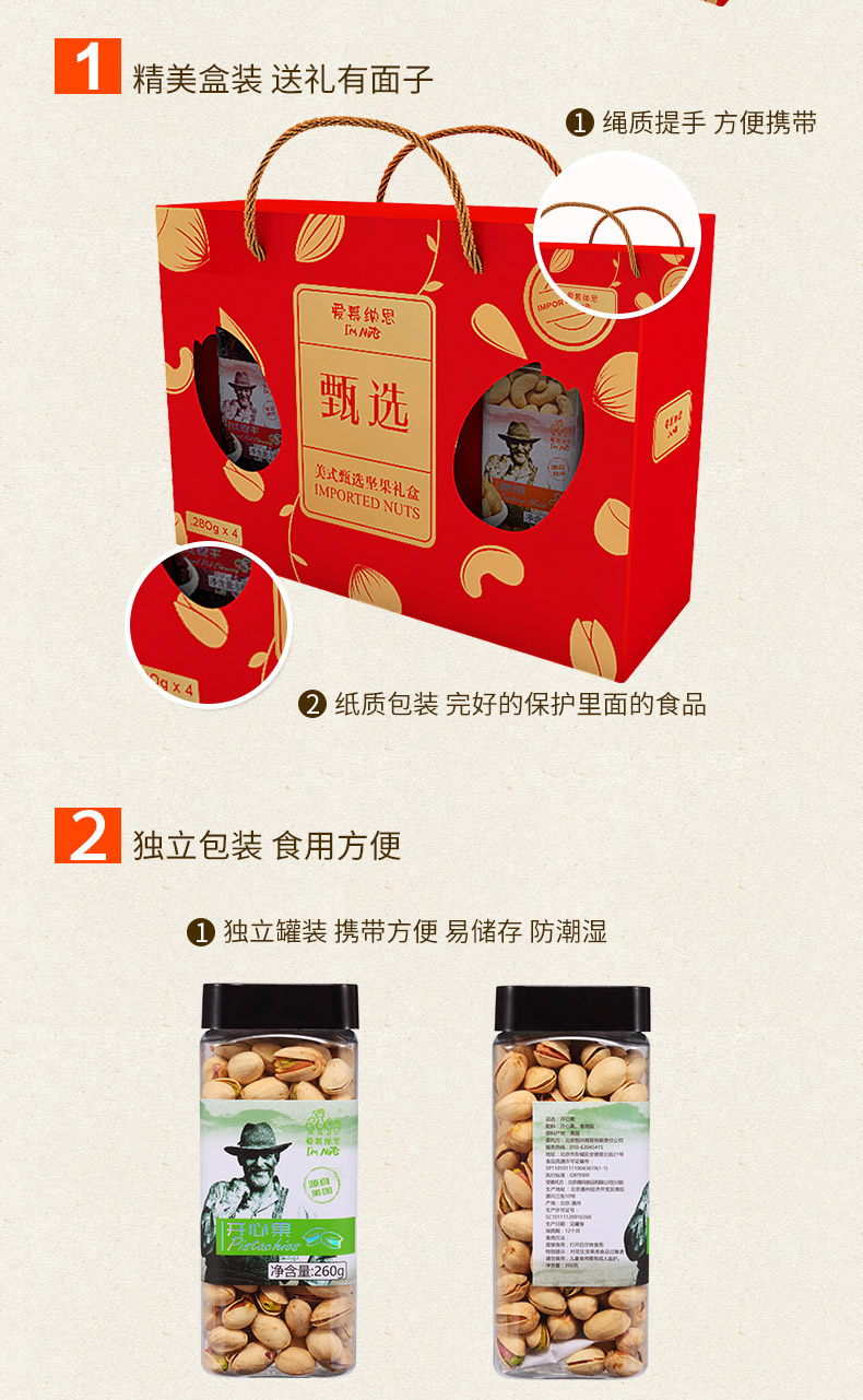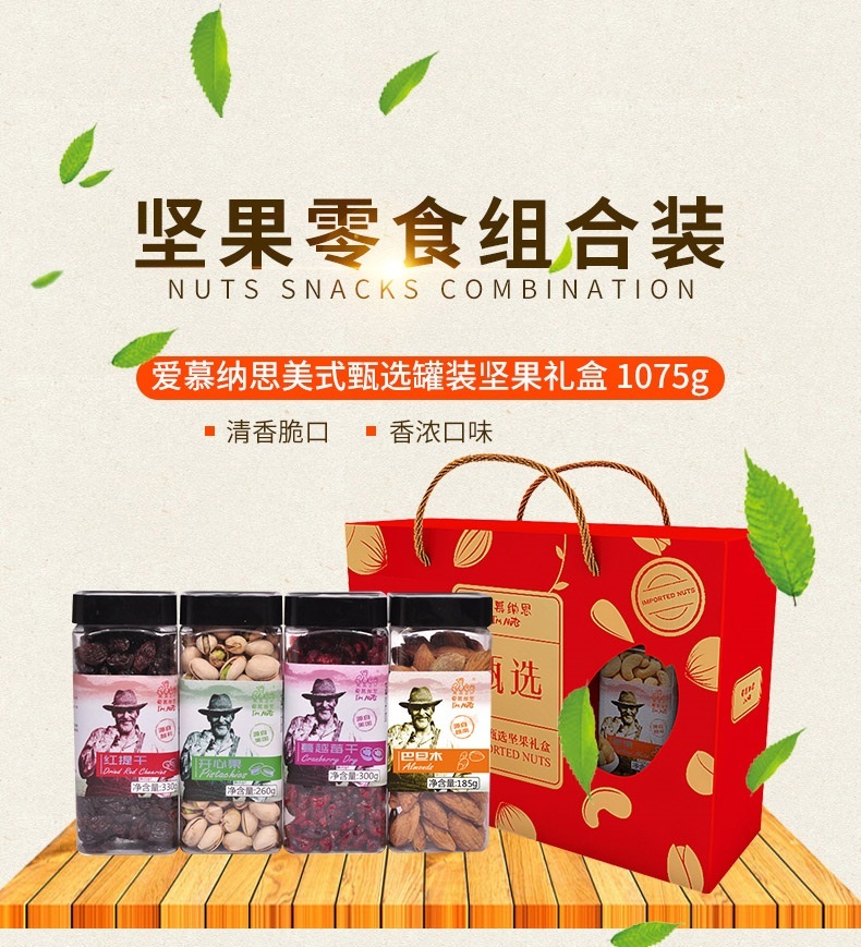 商品名称:爱慕纳思美式甄选罐装坚果礼盒1075g