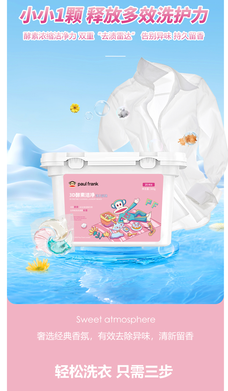 paul frank/大嘴猴3D酵素洁净洗衣凝珠25颗300g