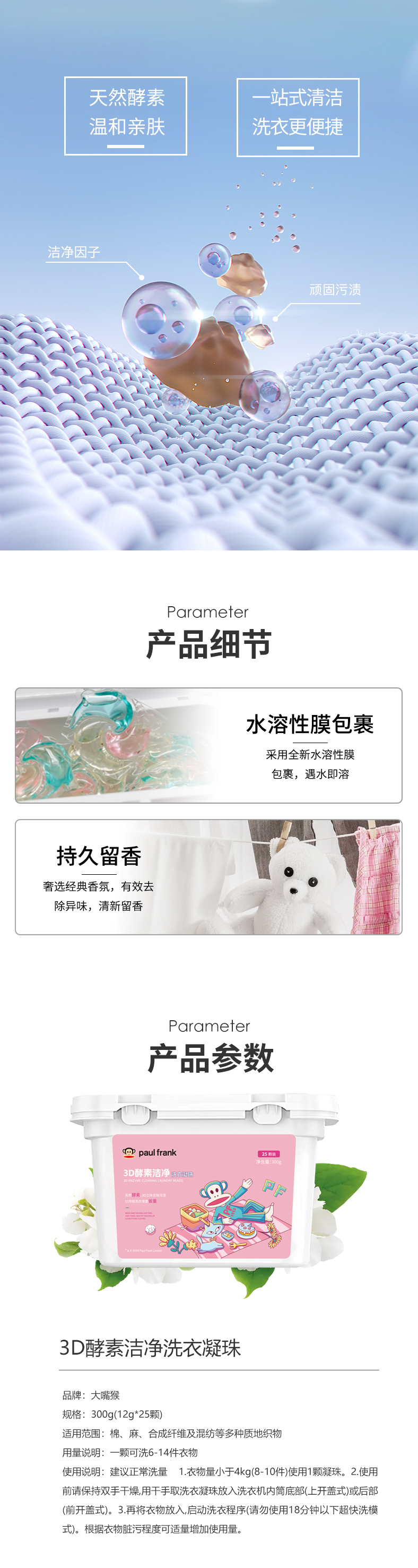 商品名称:paul frank/大嘴猴3D酵素洁净洗衣凝珠25颗300g