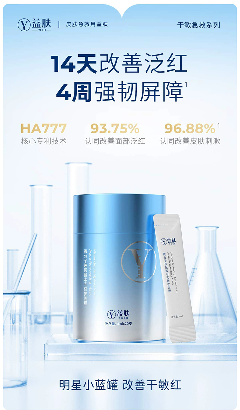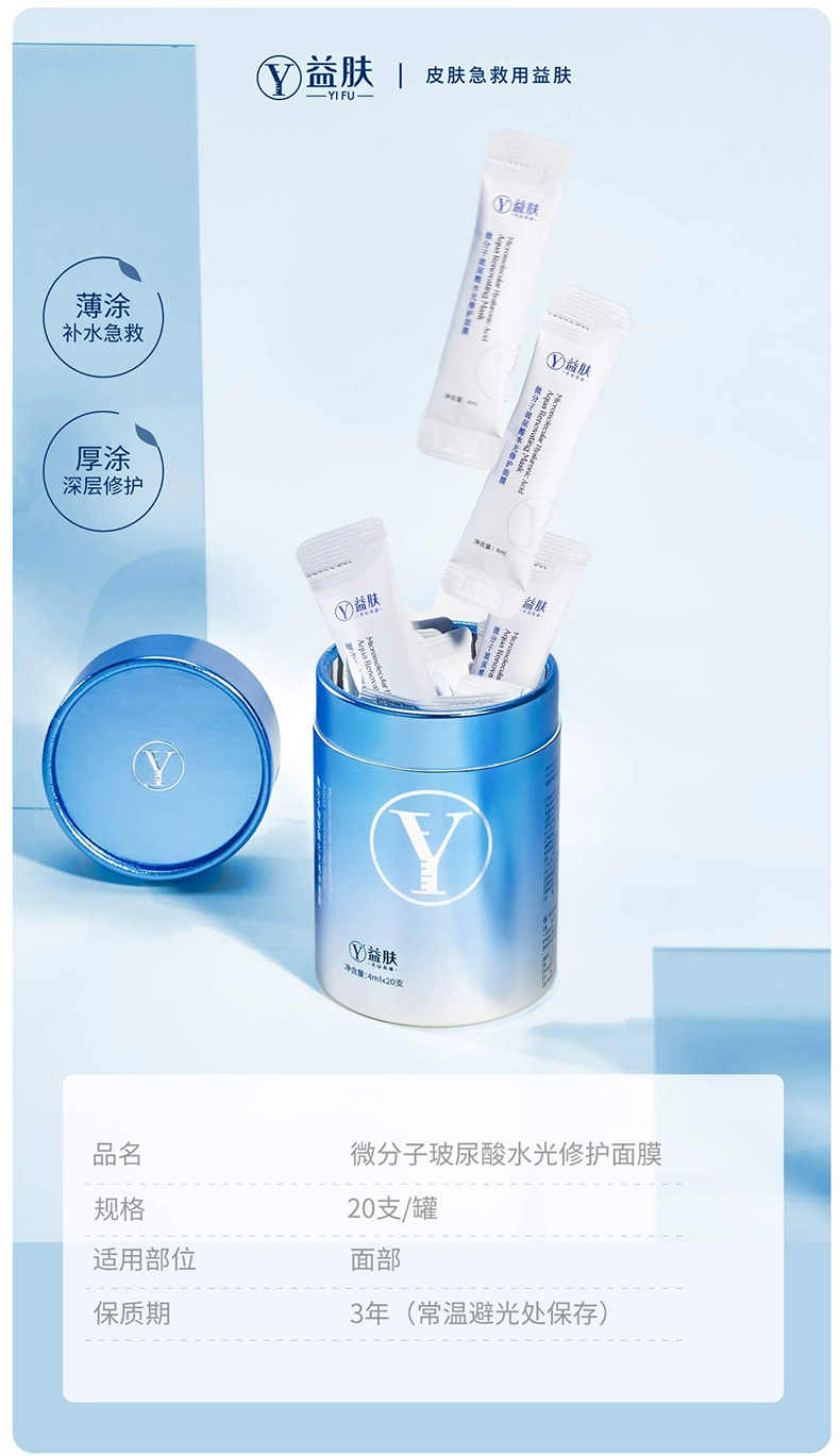 益肤小蓝罐微分子玻尿酸水光修护面膜
