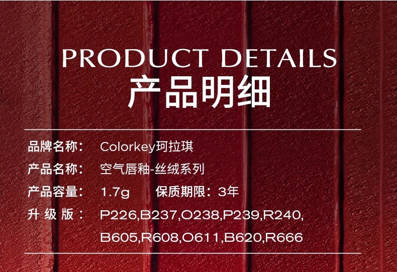 商品名称:COLORKEY/珂拉琪丝绒系列空气唇釉1.7g*2支