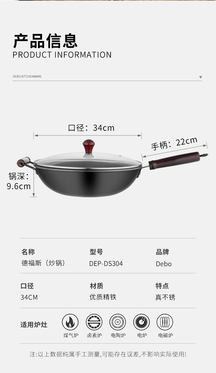 商品名称:Debo/德铂34cm德福斯炒锅DEP-DS304