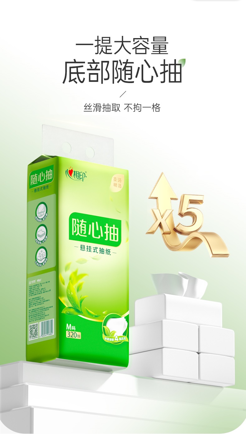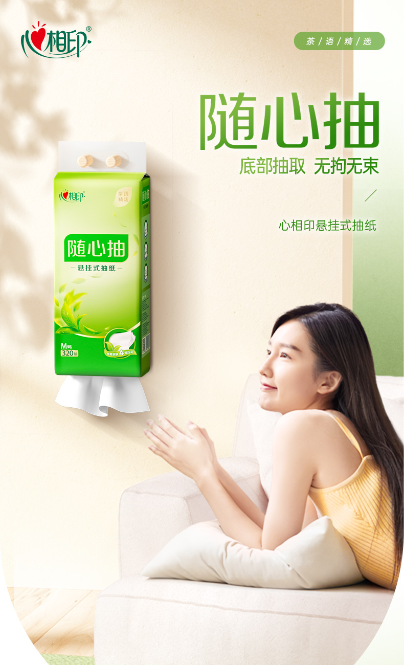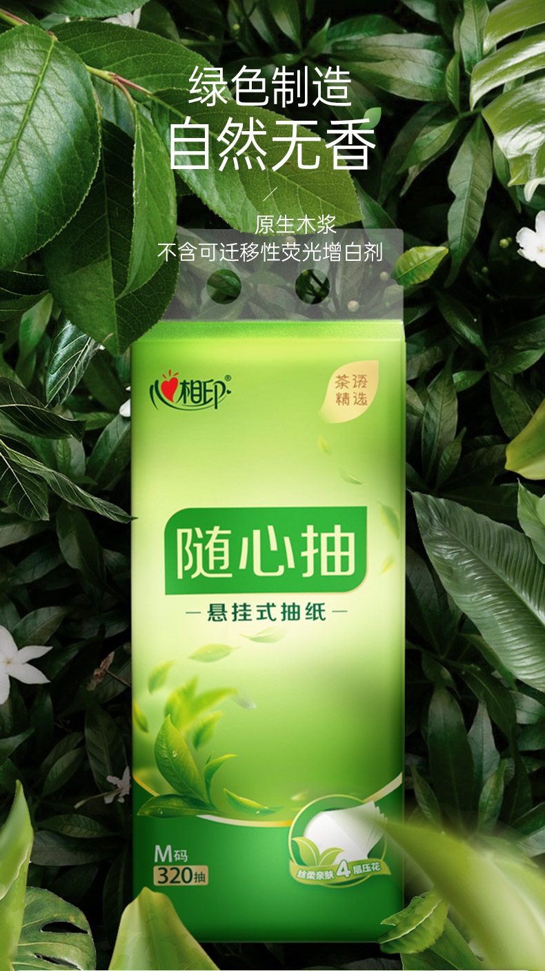 心相印茶语精选随心抽四层悬挂式抽纸320抽*4提