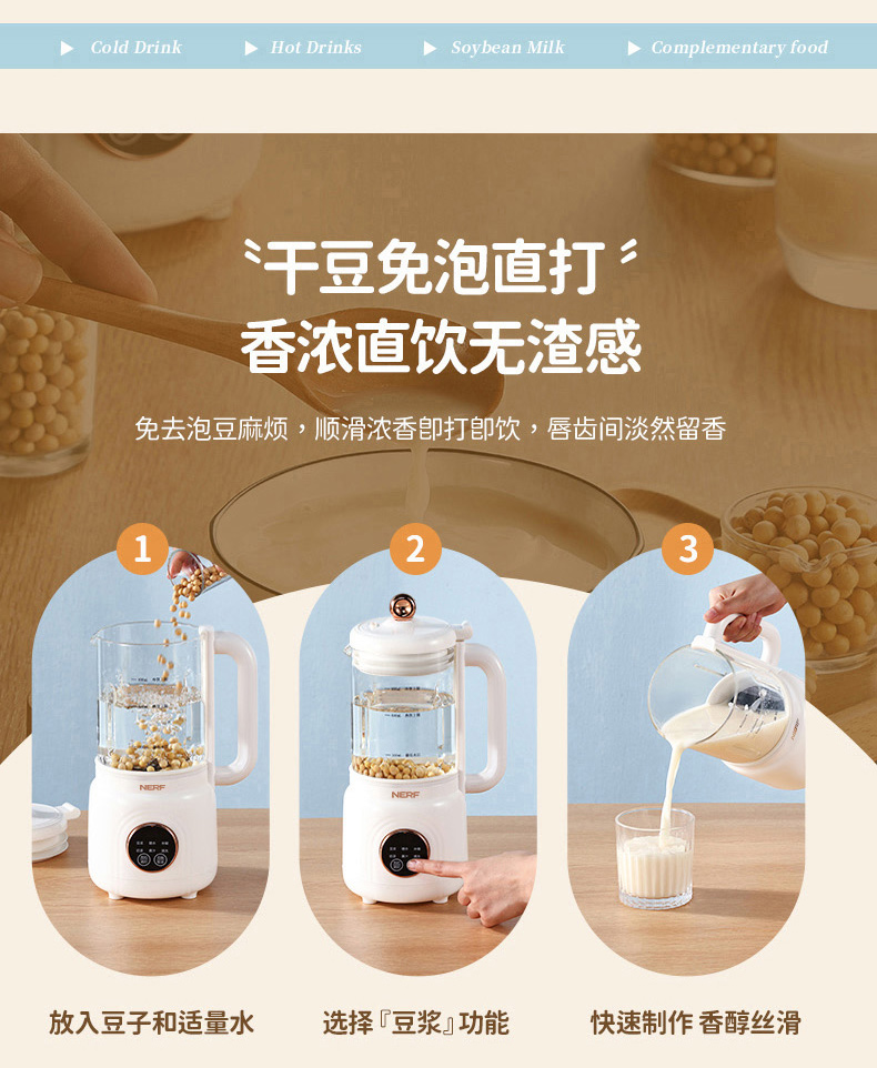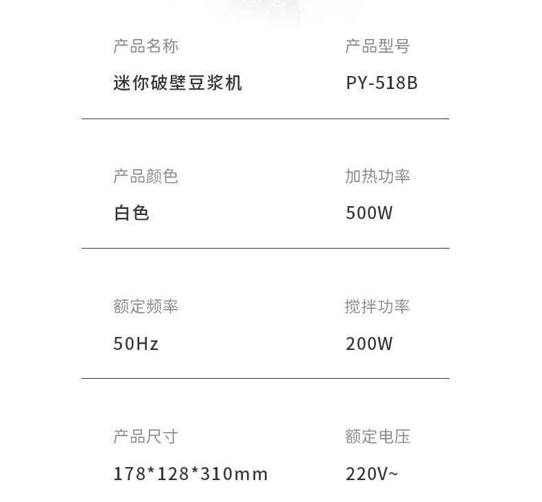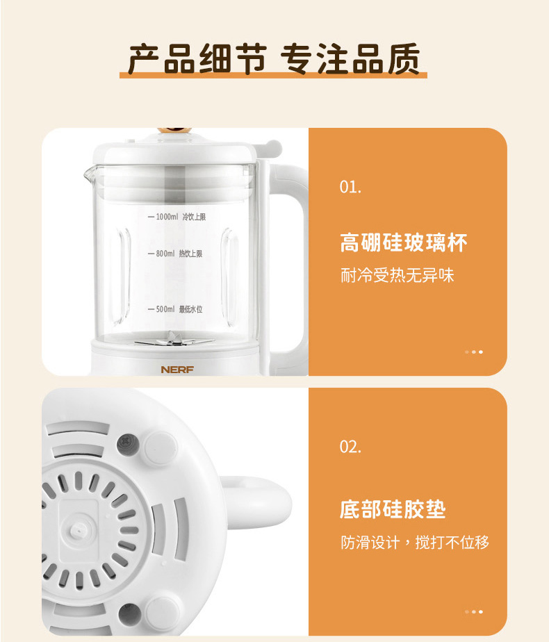 商品名称:NERF/拉尔弗1升迷你破壁豆浆机PY-518B