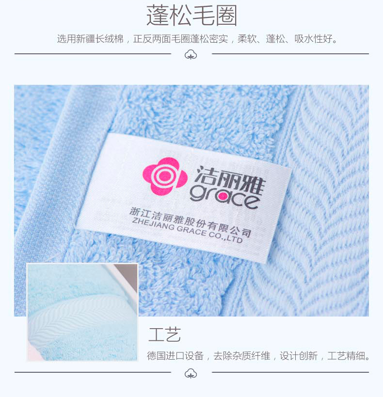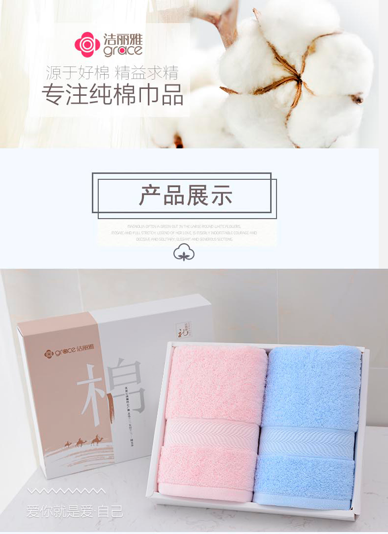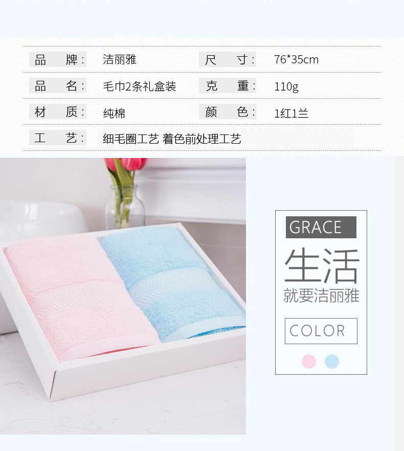 商品名称:GRACE/洁丽雅两条纯棉抗菌毛圈毛巾礼盒