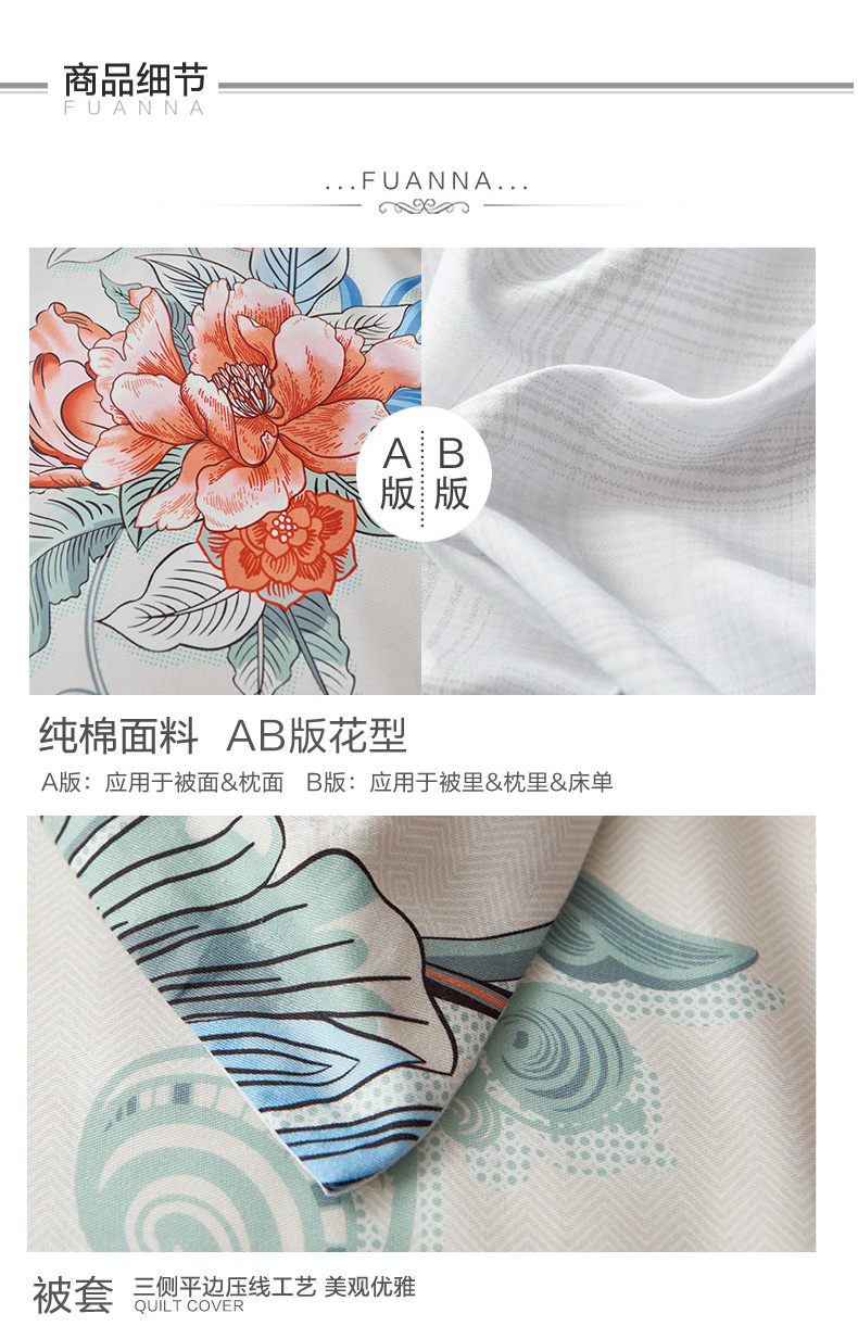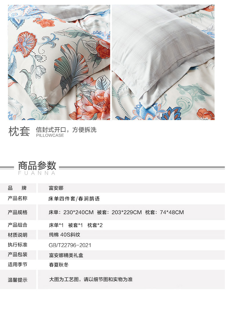 商品名称:FUANNA/富安娜春涧鹊语纯棉床品四件套203*229cm