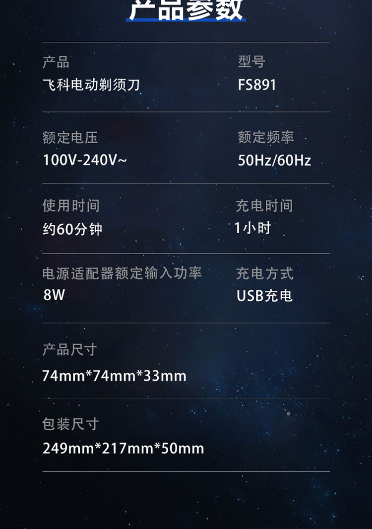 商品名称:FLYCO/飞科便携电动剃须刀FS891