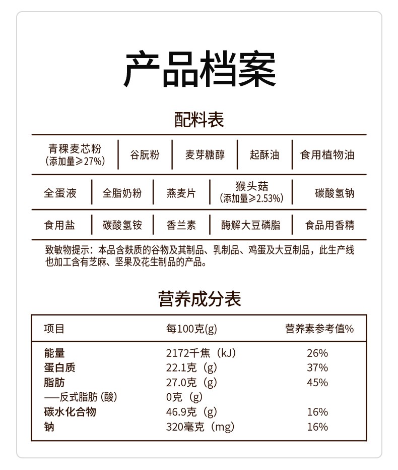 商品名称:江中猴姑青稞燕麦饼干720g