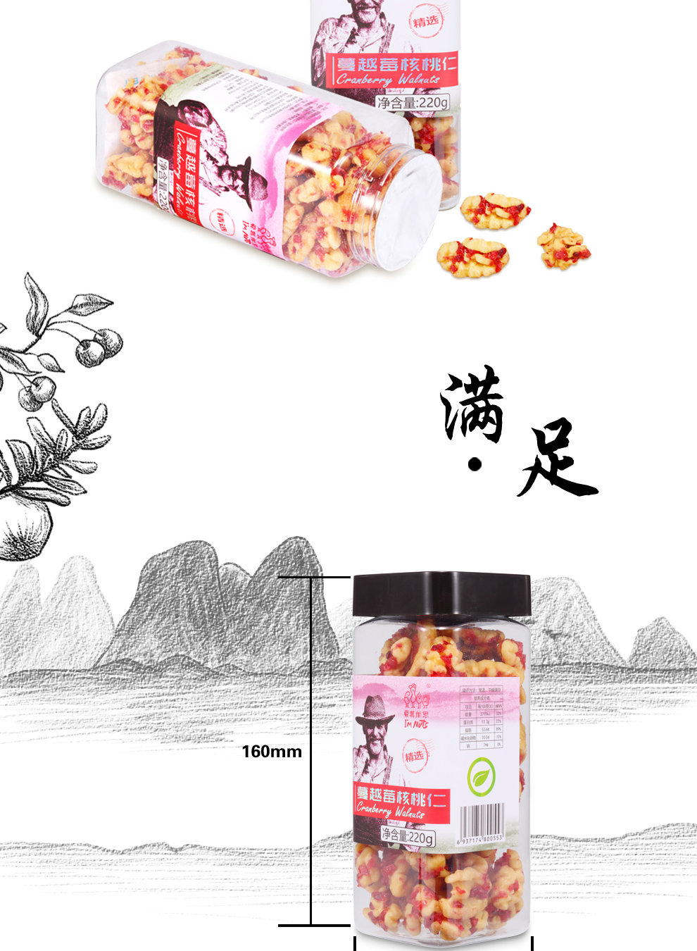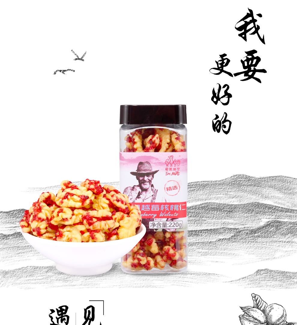 商品名称:爱慕纳思蔓越莓核桃罐装220g*2罐